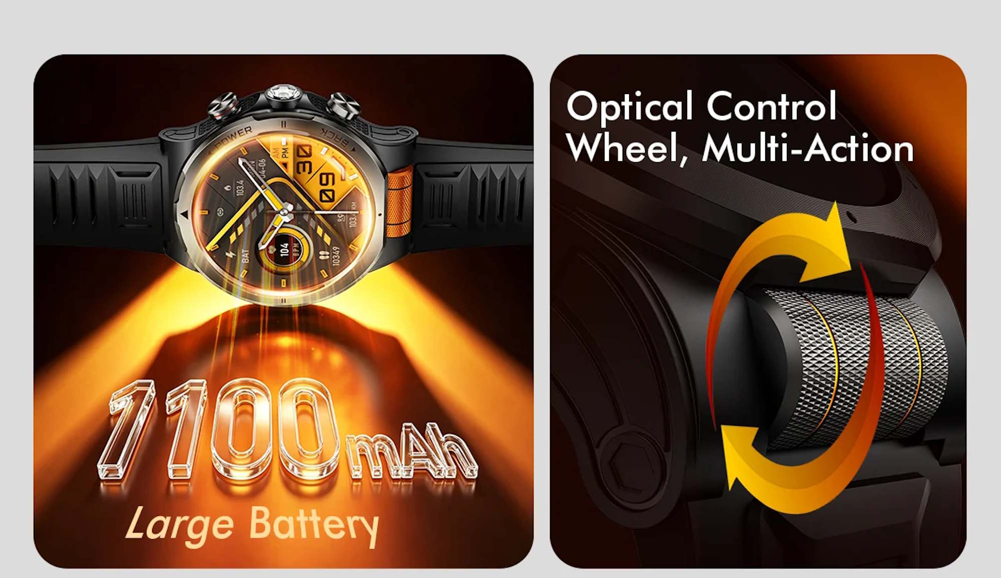 Er is ook een AMOLED-scherm met een resolutie van 466 x 466 pixels aan boord. De smartwatch maakt verder gebruik van een batterij met een capaciteit van 1.100 mAh, en de fabrikant geeft een batterijlevensduur van meer dan 100 dagen op. Dit cijfer hoeft niet geheel onrealistisch te zijn, hoewel de werkelijk haalbare batterijlevensduur bij wearables sterk afhangt van factoren zoals hoe vaak het scherm geactiveerd wordt door meldingen of handmatig. De Rogbid SpinX wordt ook geleverd met een zaklamp.
