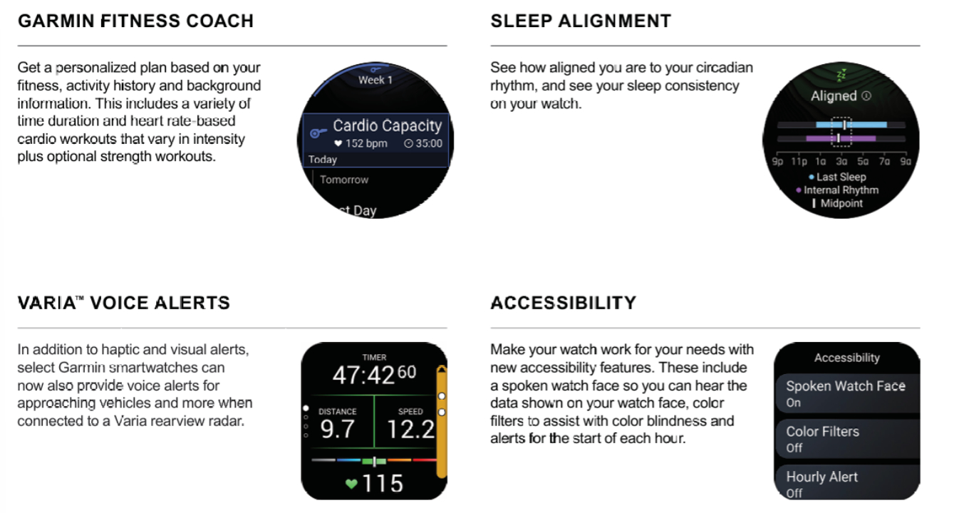 Garmin richt zich met de nieuwste Feature Update op zeven nieuwe functies. Zo zal Garmin Fitness Coach na zijn debuut op de Venu 4 (momenteel $ 549 bij Amazon) worden uitgebreid naar meer smartwatches. Andere verbeteringen zijn Varia Voice Alerts, Sport Scores en een Course Planner functie. Garmin heeft ook de optie toegevoegd om te zien hoe goed u bent afgestemd op uw circadiane ritme door middel van iets dat Sleep Alignment heet.