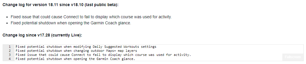 De eerste verhelpt een probleem met de Garmin Connect integratie, waarbij activiteiten soms alleen de afgelegde koers tonen. Het tweede probleem dat is opgelost, kon ervoor zorgen dat de smartwatch uitviel wanneer een gebruiker probeerde toegang te krijgen tot de Garmin Coach glance. De nieuwste release volgt op bètaversie 18.10, die ook een paar bugfixes naar deze toestellen bracht, waarbij uitschakelproblemen werden opgelost wanneer de instellingen voor de Dagelijkse Aanbevolen Training werden aangepast of wanneer outdoor Maps+ kaartlagen werden gewijzigd. Er is nog een andere fix die niet in de changelog staat; sommige gebruikers hebben bevestigd dat het probleem met ontbrekende CPE, dat begon met bètaversie 18.09, is opgelost met versie 18.10/18.11.