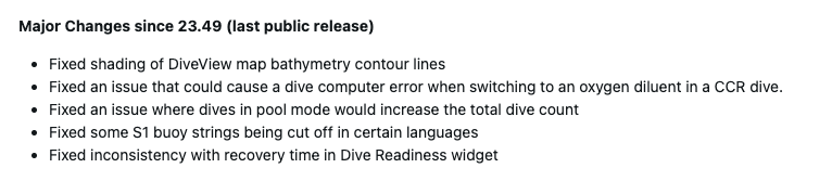 Garmin heeft inconsistenties in de hersteltijd verwijderd, die werden weergegeven in de Dive Readiness-widget van de Descent Mk3/Mk3i. Bovendien is een probleem opgelost waarbij sommige S1-boeienreeksen in bepaalde talen konden worden afgesneden. Bovendien is er een probleem opgelost waarbij het totale aantal duiken onverwacht toenam bij het opnemen van duiken in de zwembadmodus.