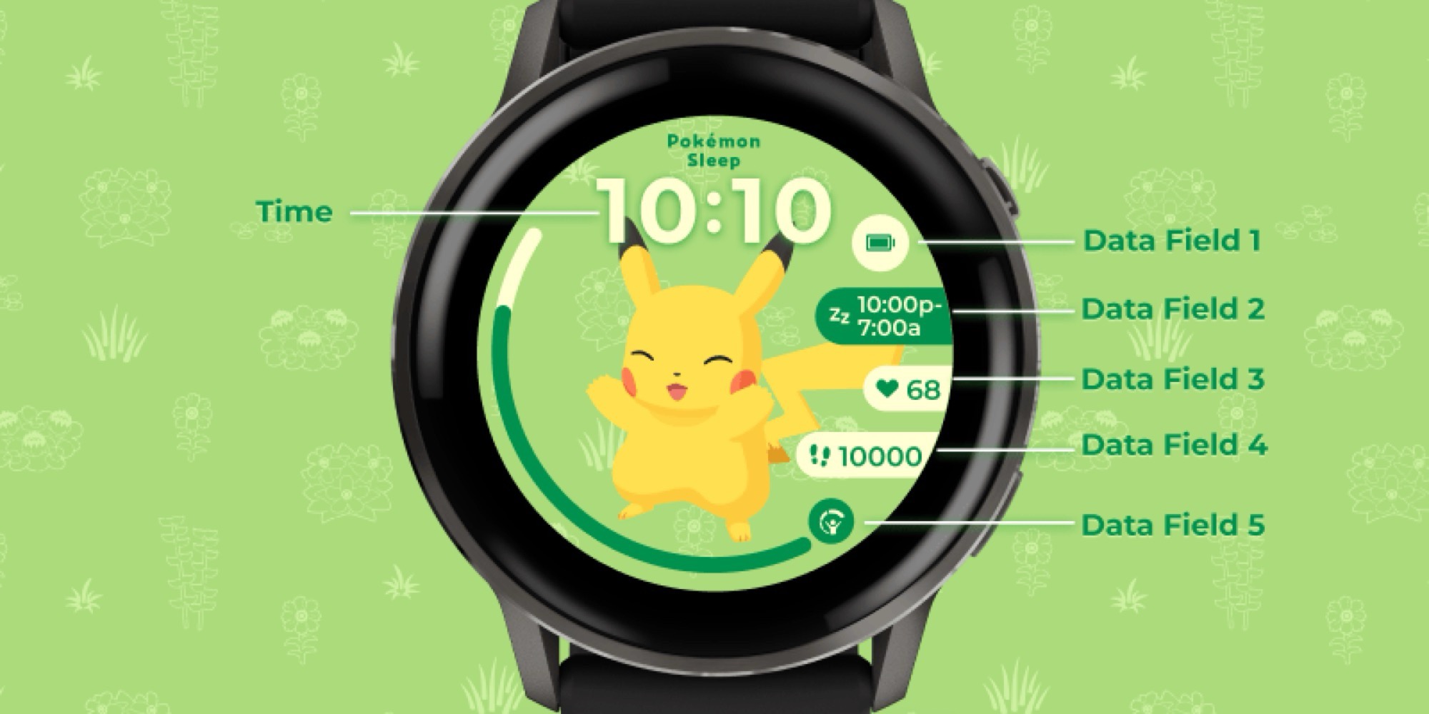 Naast de datum en tijd biedt de wijzerplaat ook ruimte voor drie ronde complicaties die vrij geselecteerd kunnen worden om bijvoorbeeld genomen stappen, hartslag of slaapgegevens direct op de wijzerplaat weer te geven. De tweede wijzerplaat, Pokémon Sleep: I Choose You, kunnen gebruikers kiezen uit in totaal 48 verschillende Pokémon. Ook deze wijzerplaat past de houding van de Pokémon aan de batterij van het lichaam aan, maar de wijzerplaat biedt ruimte voor vijf complicaties.