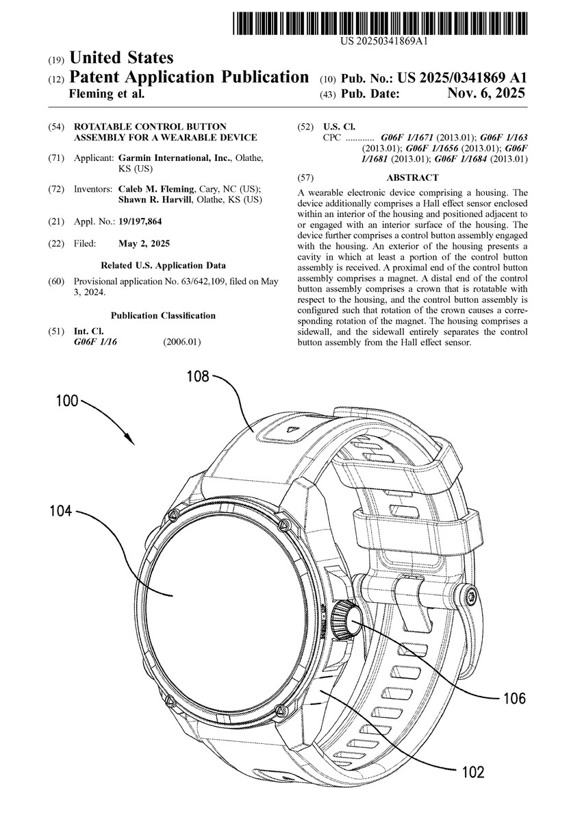 Aanvankelijk vermoedden we dat een recent patent de bron was van de bevindingen van Gadgets & Wearables. Helaas leverden Justia en andere vergelijkbare websites geen relevante resultaten op. Wearable heeft nu echter het patent ontdekt dat veel van de eerdere claims van Gadgets & Wearables lijkt te onderstrepen. Gedeponeerd als 'draaibare bedieningsknop voor een draagbaar apparaat' onder het patentnummer 20250341869beschrijft Garmin de bedieningsknop als volgt: