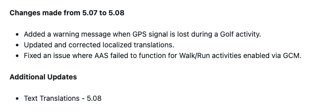Tot slot geeft Garmin aan dat het gelokaliseerde vertalingen heeft bijgewerkt en gecorrigeerd. Het bedrijf merkt op dat het horloge nu met Text Translations versie 5.08 werkt, maar welke talen van deze upgrade profiteren is onbekend.