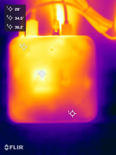 (+) Bij onbelast gebruik bedraagt de gemiddelde temperatuur voor de bovenzijde 29.5 °C / 85 F, vergeleken met het apparaatgemiddelde van 32.4 °C / 90 F.