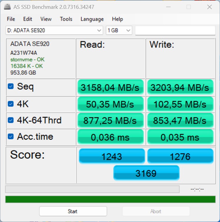 | Connectivity - USB 3.x / USB4 / TB - AS SSD Seq Read Test (1GB) | |
