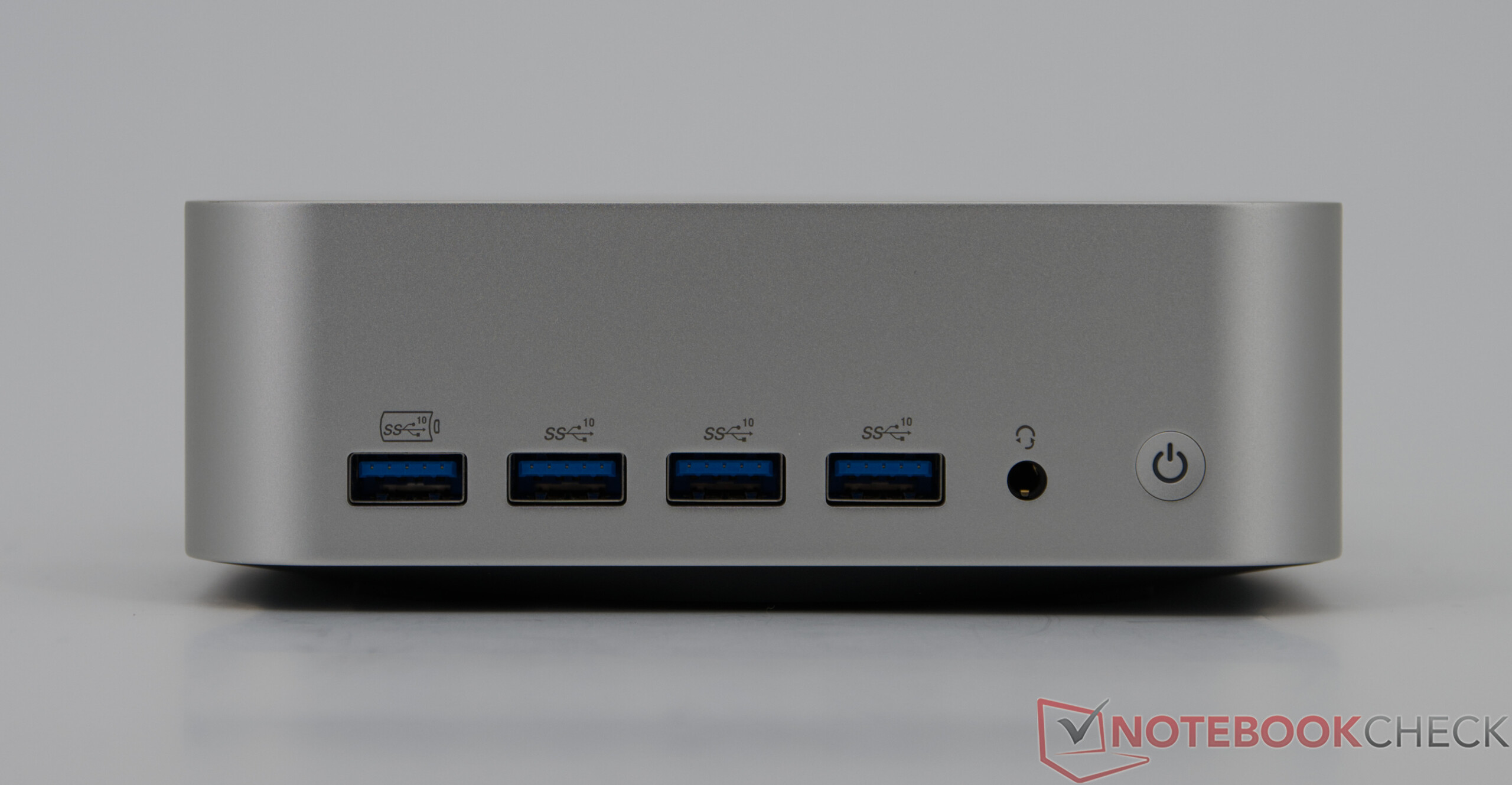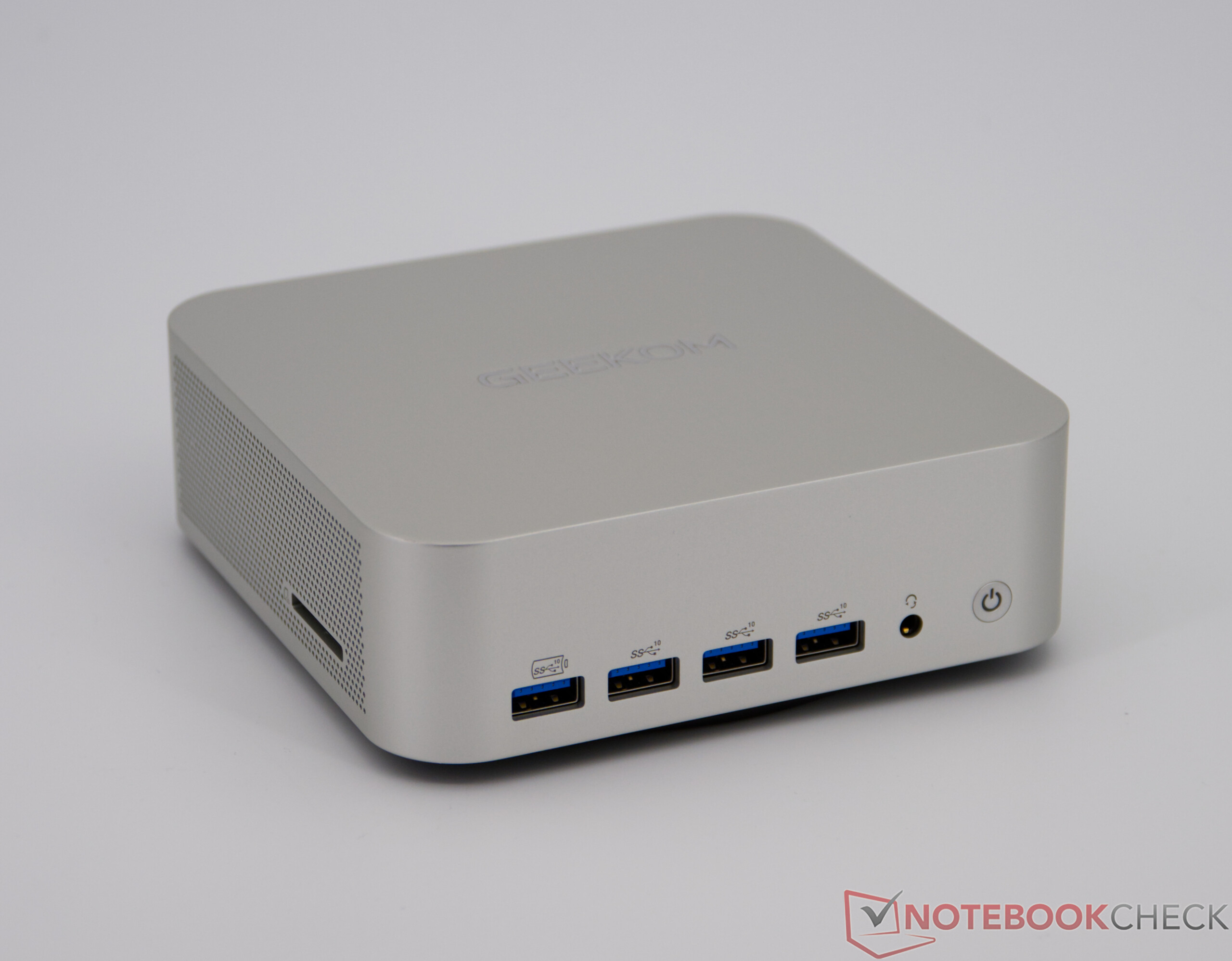 De ruim bemeten behuizing maakt een uitgebreide reeks aansluitingen mogelijk: er zijn in totaal zes USB-A poorten beschikbaar, waarvan vier aan de voorkant, aangevuld met twee USB4 poorten aan de achterkant en twee HDMI uitgangen. Hierdoor kunnen maximaal vier monitoren tegelijkertijd worden gebruikt. Een snelle SD-kaartlezer aan de zijkant maakt de uitrusting compleet, terwijl USB4 hoge gegevenssnelheden mogelijk maakt, zoals externe SSD's op indrukwekkende wijze aantonen.