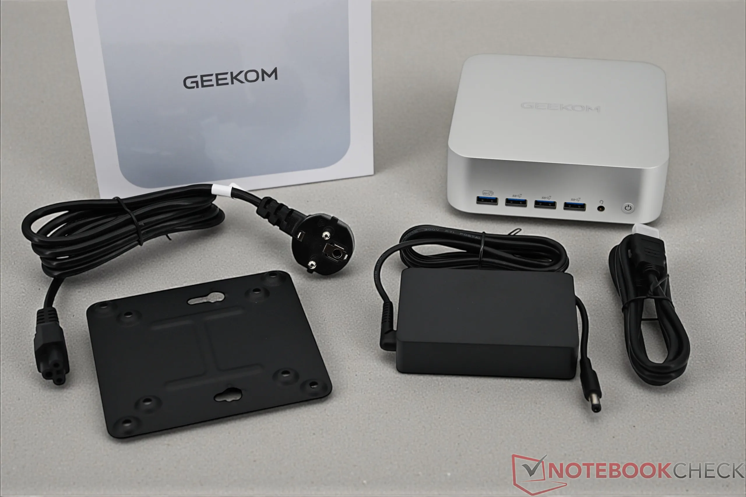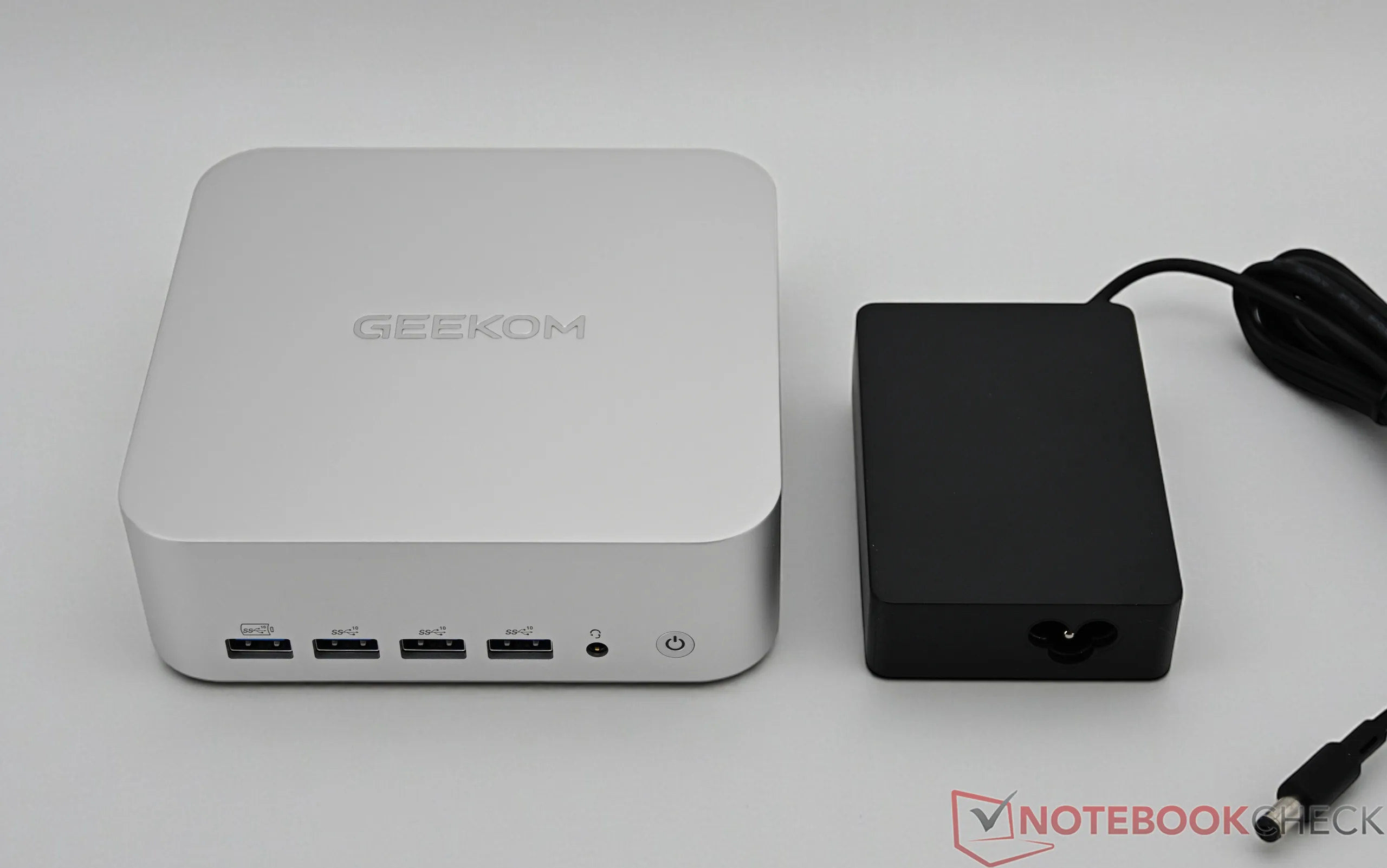 De Geekom A7 Max maakt gebruik van dezelfde, grotere behuizing als de A8 Max of de A9 Max, waardoor hij zich duidelijk onderscheidt van eerdere modellen. Toch heeft Geekom gekozen voor de veelgebruikte aluminium behuizing, waardoor alle voor- en nadelen hetzelfde blijven. De afwerking is van hoge kwaliteit en komt overeen met de prijsklasse. Met een gewicht van ongeveer 681 gram blijft de Mini-PC ondanks zijn grootte lichter dan sommige concurrerende modellen, terwijl de compacte voedingseenheid van 256 gram nauwelijks opvalt.