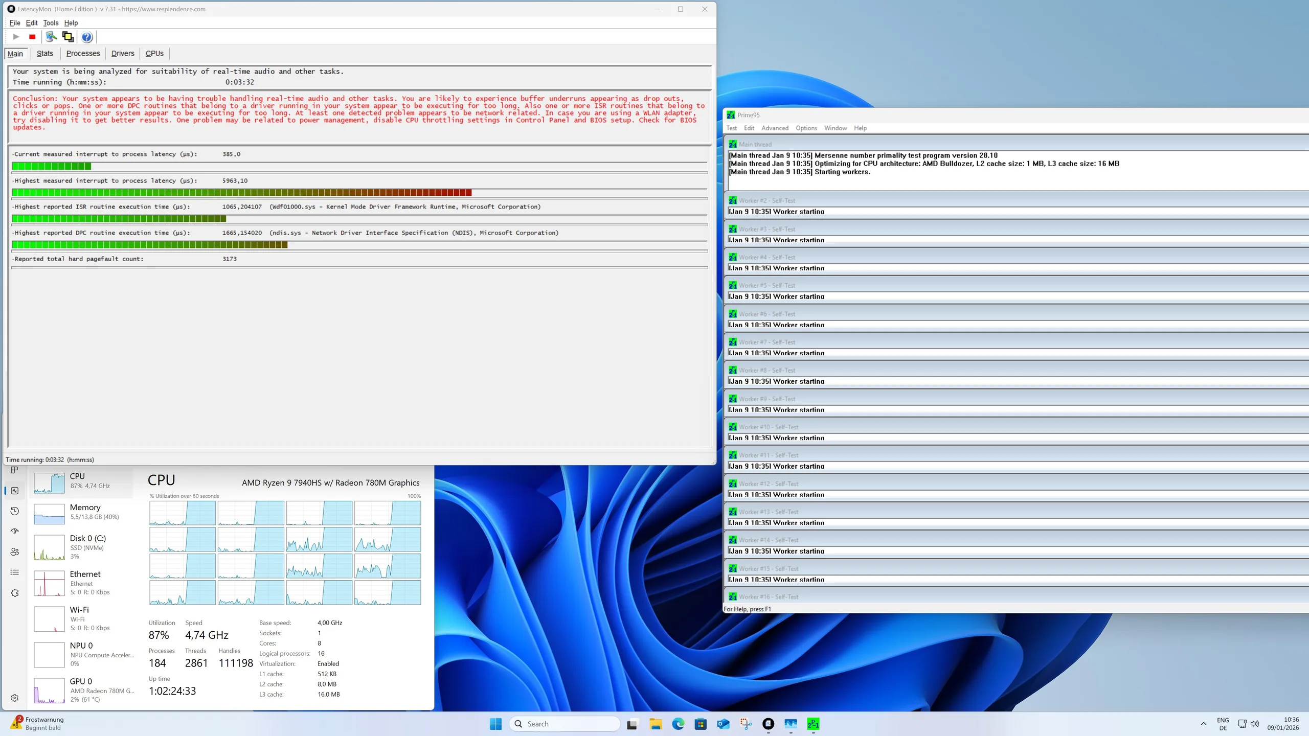 | DPC Latencies / LatencyMon - interrupt to process latency (max), Web, Youtube, Prime95 | |