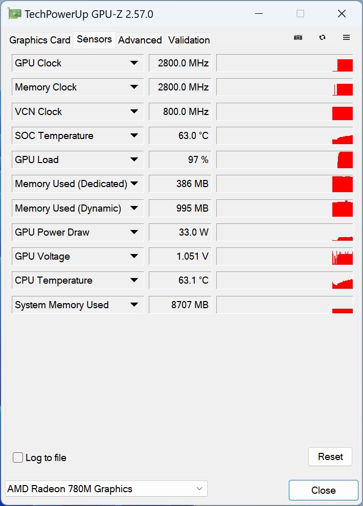 De Geekom A7 is niet overtuigend op het gebied van latentie. We bereikten de maximale waarde zelfs bij gewoon surfen op het internet. Bij het afspelen van onze 4K testvideo en de kortstondige stresstest nemen de latency niet verder toe. De mini-pc heeft geen problemen met het afspelen van video. De iGPU wordt maar voor iets minder dan 30 procent gebruikt en dropped frames kwamen alleen in het begin voor.