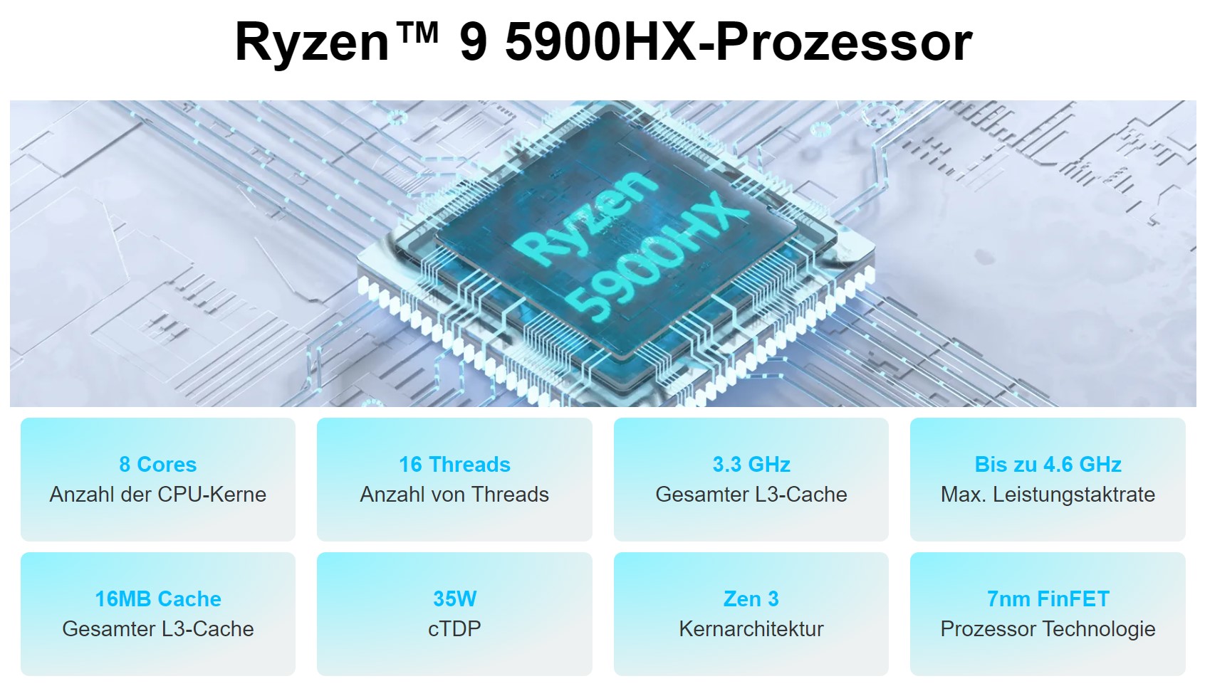 Met deAMD Ryzen 9 5900HXbiedt de Geekom AS 5 een goede SoC met 8 cores en 16 threads die echter niet meer tot de meest actuele chips behoort omdat AMD zijn opvolger, deRyzen 9 6900HX- een chip die we zullen bekijken in een van onze komende tests.