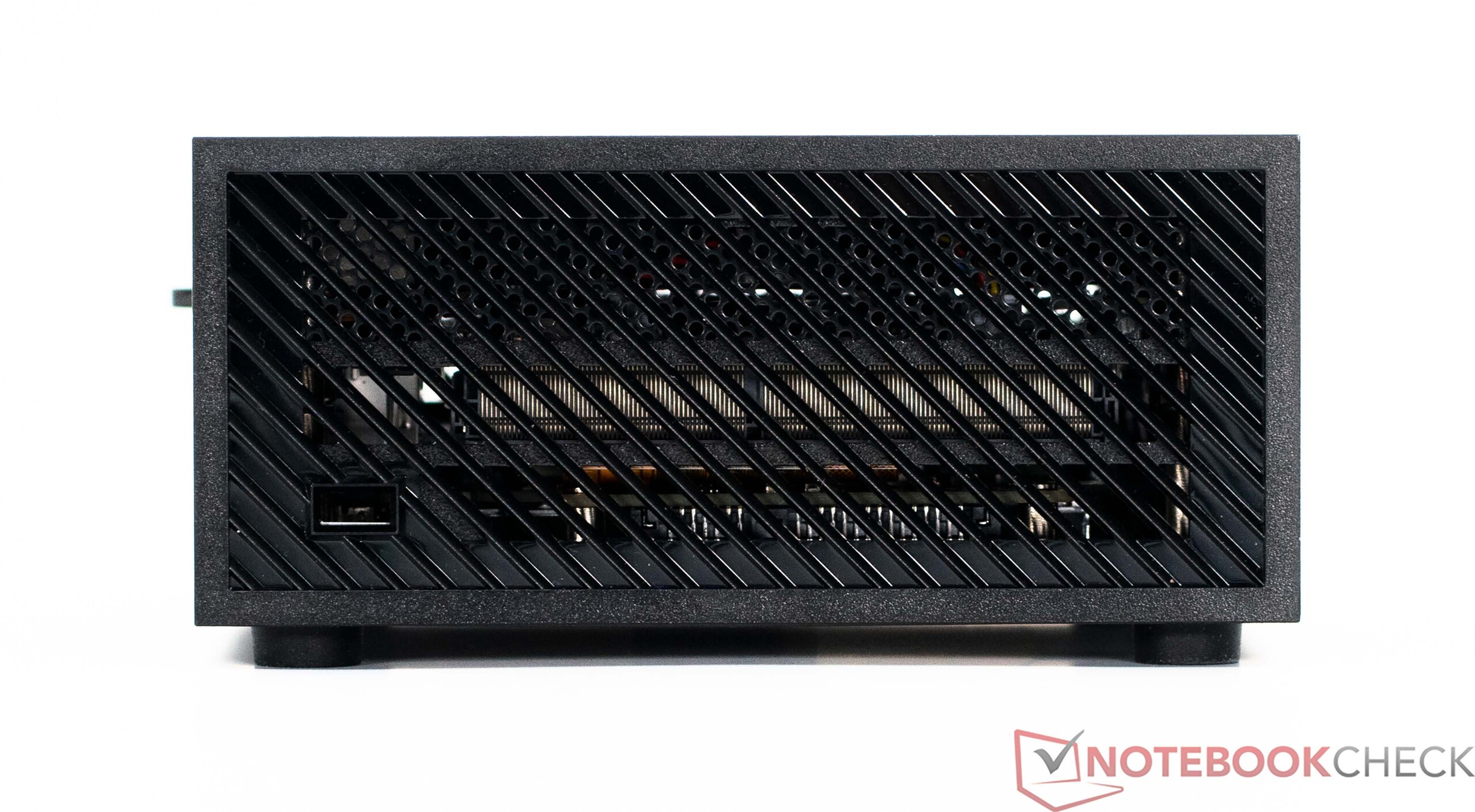 Als de Geekom AS 5 stationair draait, wordt de behuizing een beetje warm. Dit betekent dat er niet echt sprake is van warmteontwikkeling, omdat de warme lucht de kortst mogelijke route neemt en naar de achterkant van het apparaat wordt geleid voordat het wordt afgevoerd.