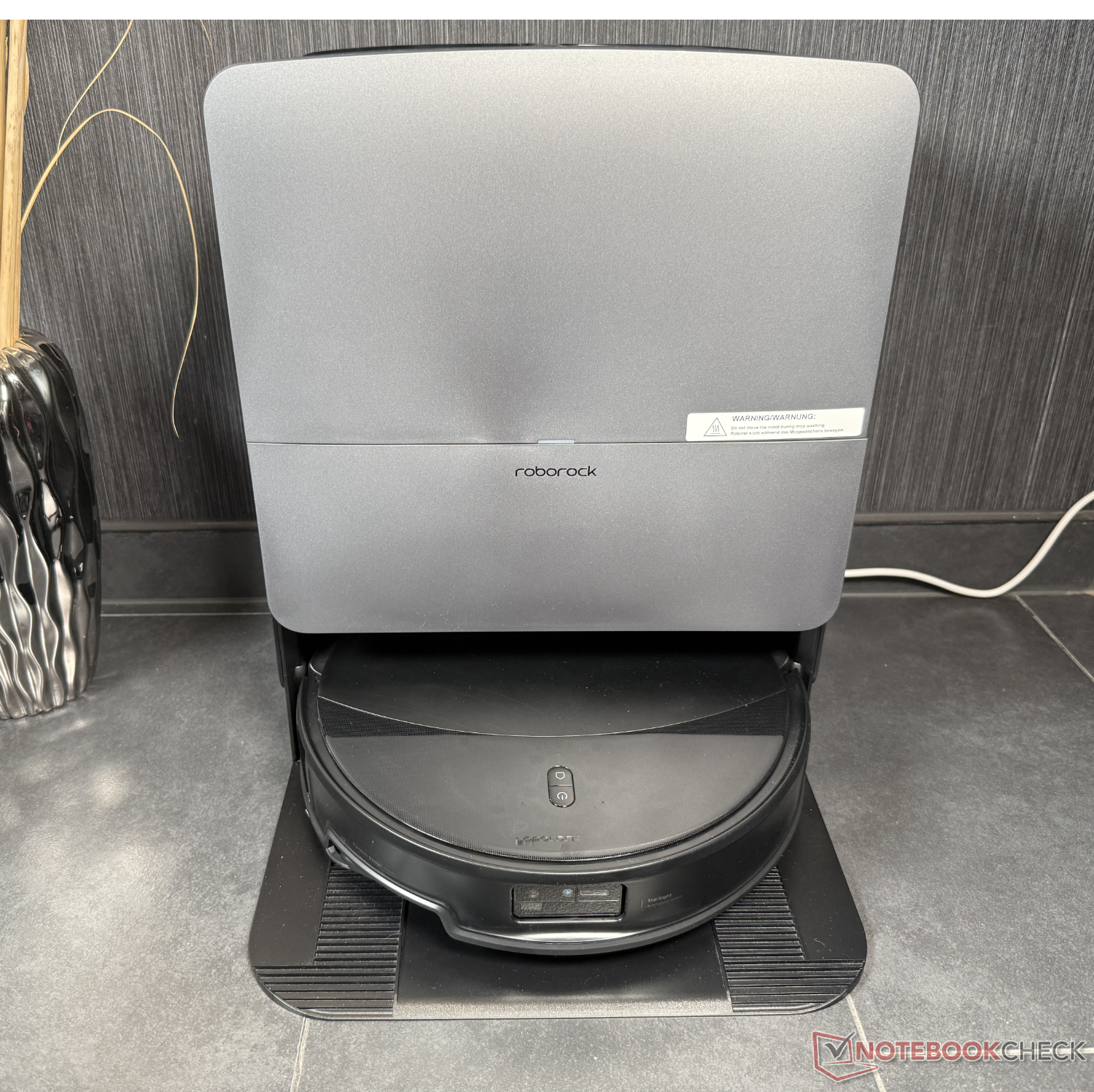 Wij hebben de Saros 20 Set getest. Aangezien er geen schoonmaakmiddel bijgeleverd is, hebben we dit niet meegenomen in onze schoonmaaktests (ondanks de optie van automatische dosering in het station). Dat brengt ons bij de RockDock, het reinigingsstation van de Saros 20. Het heeft een ontwerp dat erg lijkt op dat van de RockDock. Het heeft een zeer gelijkaardig ontwerp als de Saros 10R, maar kan nu de moppen en zichzelf reinigen met 100°C heet water. Dit wordt gevolgd door drogen met 55°C warme lucht. Naast het gebruikelijke zelf legen van het stofreservoir in een stofzak (die nu met frisse lucht wordt gedroogd), is er ook de eerder genoemde reinigingsmiddeldosering en het opladen in 2,5 uur.
