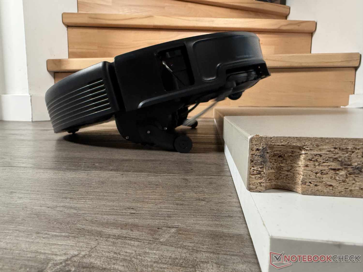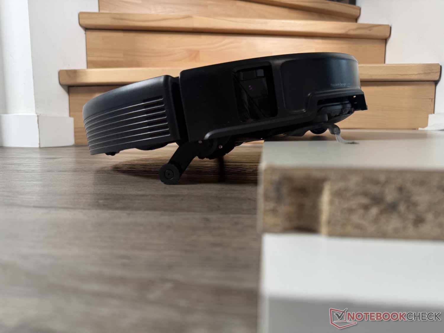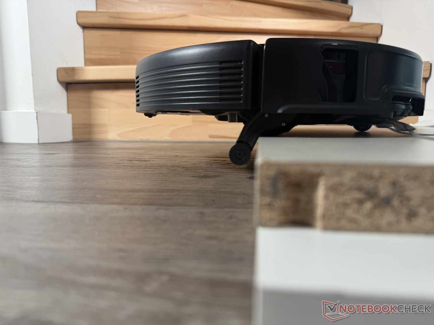 Dankzij zijn enorme klimvermogen tot 8,8 cm (in twee stappen) kan de Roborock Saros 20 bijna elke drempel overwinnen. In de praktijktest beklom hij met succes een 4,5 cm hoge richel van 90 graden, ook al zag het er soms wat moeizaam uit. Om dit te doen, zet hij zijn twee kleine hulppoten uit om zichzelf eerst aan de voorkant op te krikken en dan de achterkant te laten volgen.