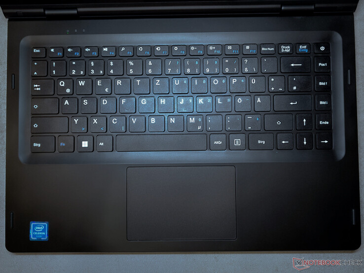 Het aanraakscherm en het touchpad van de GeoFlex 140 zijn nauwkeurig en bieden respectievelijk tien en vijf aanraakpunten. Beide reageren snel zonder merkbare latentie. Het toetsenbord van de convertible biedt geen hoge toetsval, maar heeft in ieder geval een prettig gevoel bij het typen. Een soort NumBlock kan als overlay over de letters aan de rechterkant worden geplaatst. Twee duidelijke punten van kritiek op het toetsenbord zijn het ontbreken van achtergrondverlichting en de ongebruikelijke ANSI indeling van het toetsenbord. Alle Europese toetsenborden zijn normaal gesproken gebaseerd op de ISO-indeling met overeenkomstige karakterindelingen voor de verschillende nationale talen. Aangezien Geo Computers een bedrijf is dat voornamelijk in Europa opereert, is de keuze voor de ANSI layout voor ons niet logisch. In tegenstelling tot veel andere convertibles ondersteunt de GeoFlex 140 geen digitale peninvoer.