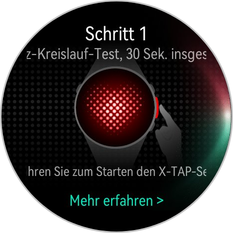 Tests kunnen handmatig op het horloge worden gestart door een vinger op de X-Tap sensor te plaatsen, en ze duren slechts ongeveer een minuut. Naast de individuele metingen biedt de software ook Health Insights, waarbij veranderingen en trends zoals een ongewoon hoge hartslag in rust worden gemarkeerd.