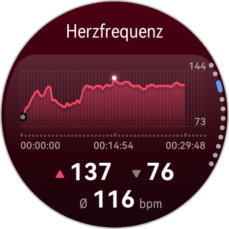 Voor de hartslag gebruiken we een Polar H10 borstband als referentie. De hartslagafwijking in rust is één slag per minuut, gelijk aan 1,75 procent. We hebben ook de prestatiehartslag op drie verschillende tijdstippen gemeten. Bij al deze tests is de gemiddelde afwijking 0,96 procent, met een grootste afwijking van twee slagen per minuut.