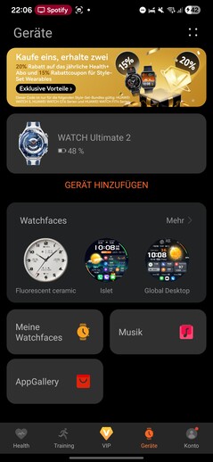 De Huawei Health app is nodig om de Watch Ultimate 2 in te stellen en te bedienen. De nieuwste versie is nog steeds niet beschikbaar in de Google Play Store, maar kan wel gedownload worden in andere app stores of rechtstreeks via de browser.