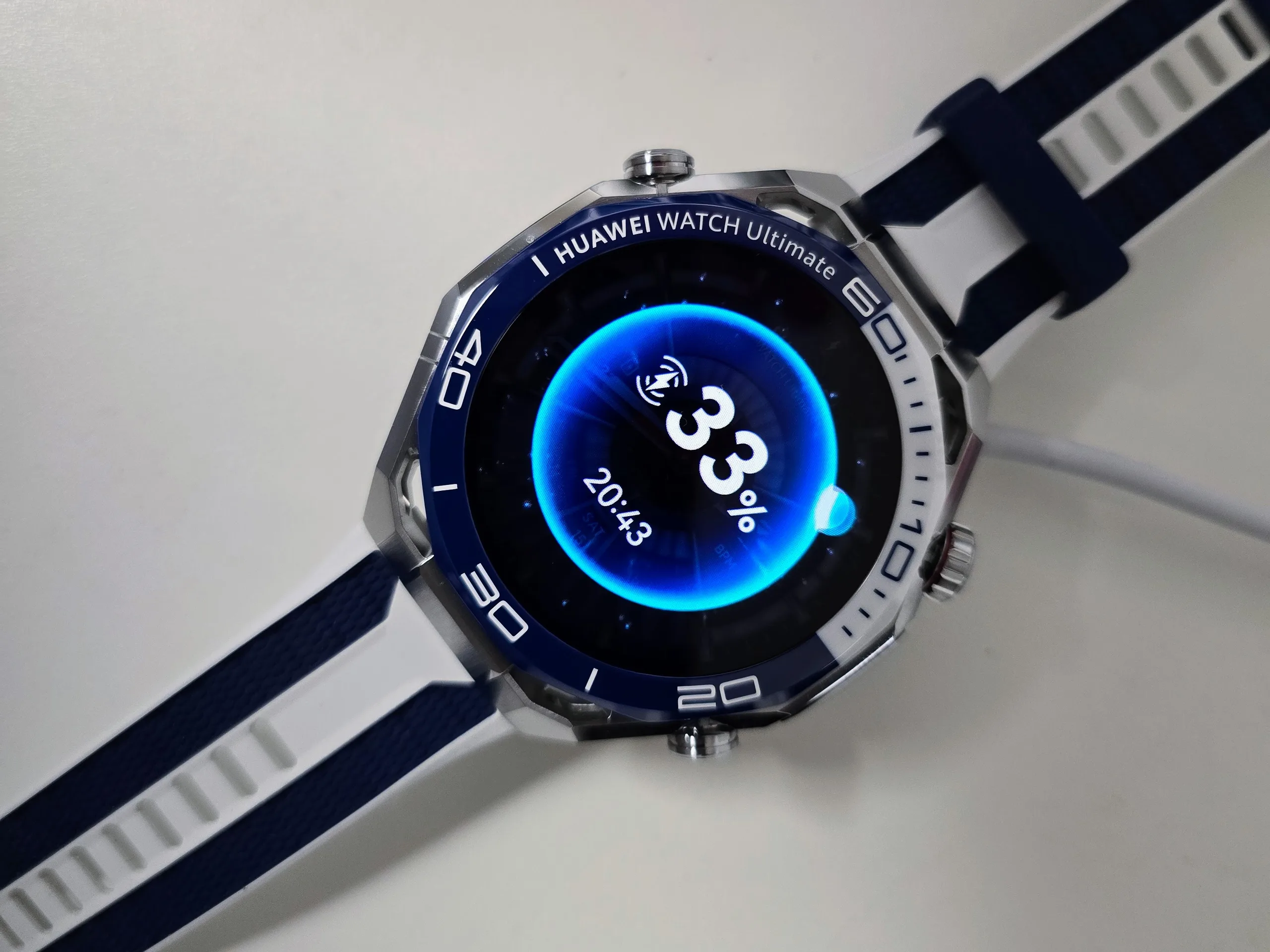 Huawei levert een 867 mAh batterij mee. Opladen gebeurt draadloos via een Qi-pad. Met een Anker 355 voeding ging de Watch Ultimate 2 in 40 minuten van 3 naar 50 procent, en een volledige lading duurde ongeveer 90 minuten.