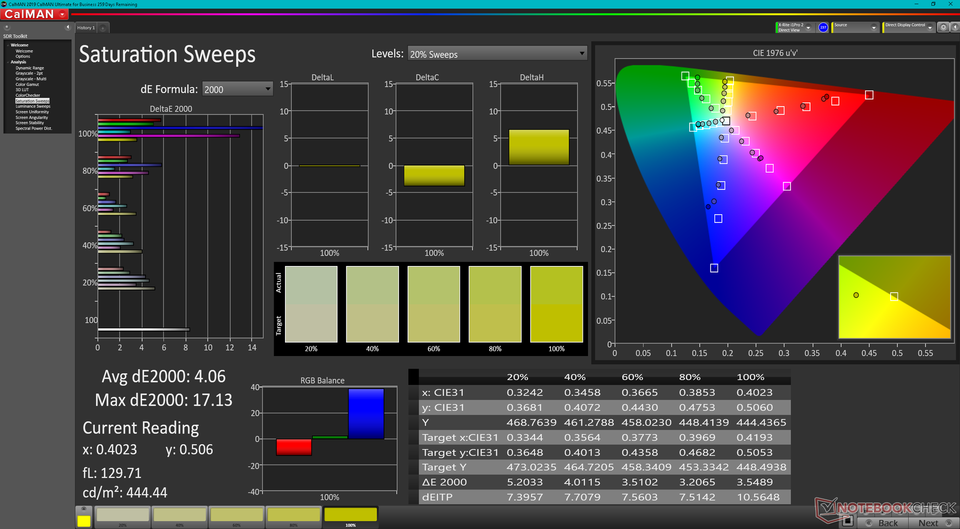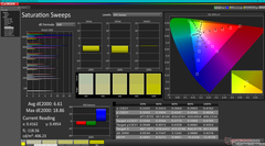 De kleurtemperatuur is te koel, wat gebruikelijk is bij panelen met een zeer smal kleurbereik. De gemiddelde DeltaE-waarden verbeteren niet noemenswaardig, zelfs niet na kalibratie met onze eigen X-Rite colorimeter.