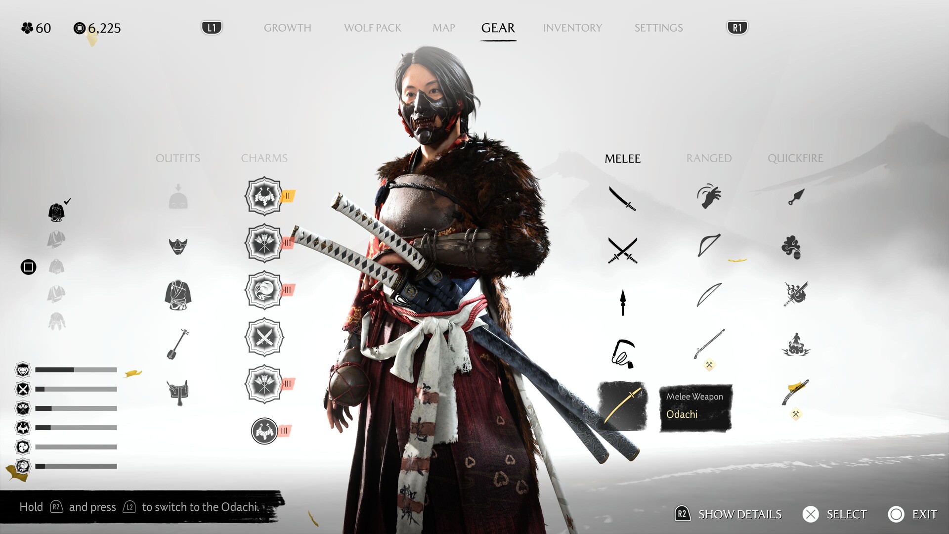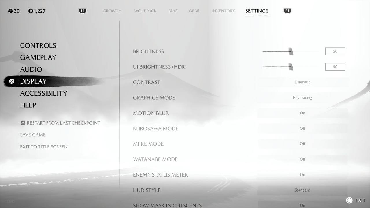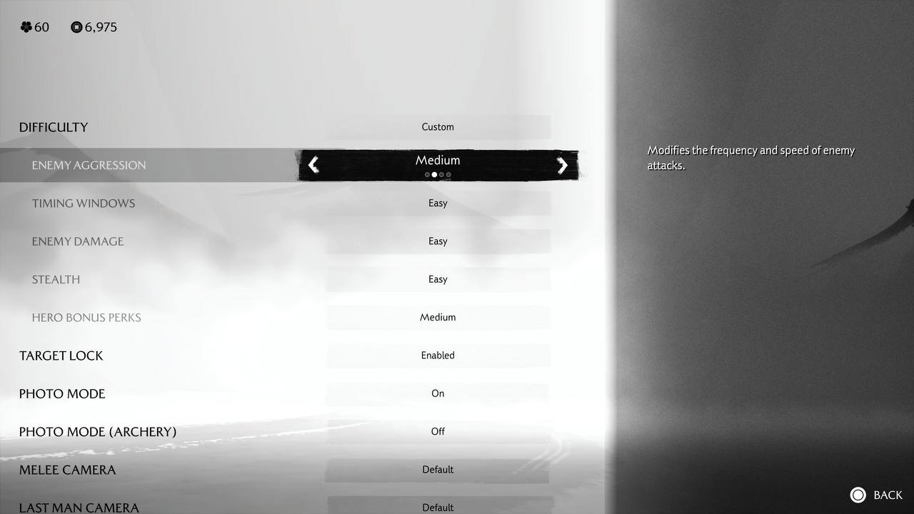 Een van de opvallendste veranderingen in Ghost of Yotei is de verscheidenheid aan wapens, een broodnodige verbetering ten opzichte van de op standen gebaseerde gevechten in Tsushima. Het balanceren van meerdere wapens kan lastig zijn, maar niets in het spel lijkt overdreven krachtig. Het wisselen van wapens is naadloos en een noodzakelijk mechanisme omdat vijanden vaak een heel arsenaal bij zich hebben en sommige wapens moeilijk tegen andere wapens op te boksen zijn. Zo worden Yari-handlangers tegengewerkt door dual-Katana's, bruten door de Odachi enzovoort. De eigenlijke gevechten zijn behoorlijk uitdagend, zelfs op de normale moeilijkheidsgraad. Meerdere vijanden zwermen op u af en het wordt ontmoedigend om ze allemaal in de gaten te houden. Standaard is de mogelijkheid om op individuele vijanden te richten uitgeschakeld, en ik raad u ten zeerste aan om dit via de instellingen in te schakelen. Meerdere aspecten van de moeilijkheidsgraad, zoals de geleden schade, de detectiesnelheid van de vijand en de agressie van de vijand, kunnen per onderdeel worden aangepast. Zie het als een afgezwakte versie van wat Doom: The Dark Ages biedt. Pareren is met een beetje oefening gemakkelijk onder de knie te krijgen. Om de timing in uw spiergeheugen te krijgen, speelt u met het Bounty Hunter-pantser dat reguliere afweerschoten volledig uitschakelt, maar de timing van het pareren versoepelt. Gevechten van afstand krijgen om de een of andere reden een frisse wind door de toevoeging van werpbare bommen en een geweer. Ik was er niet zo dol op, maar dat kan verschillen. Bij één side-quest krijg je een charme waarmee je automatisch en zonder moeite vijanden kunt headshotten voor die clipwaardige 360-no-scope.