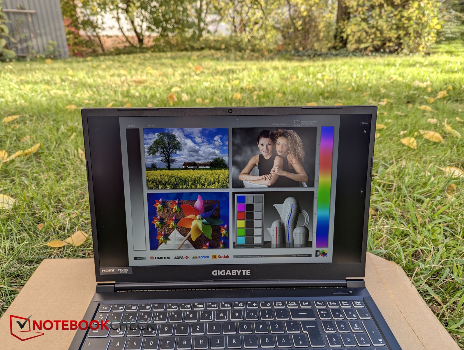 Uiterlijk is er vrijwel niets veranderd ten opzichte van zijn voorganger, aangezien het plastic Clevo-design ("Iron Gray") ook is overgenomen van de Gigabyte G5 KE (toen nog met RTX 3060). Interessant is dat de voormalige Thunderbolt 4 ondersteuning van de linker USB-C poort is verwijderd. Er is ook bespaard op de webcam, die slechts een resolutie van 720p heeft, en nogal wazig is; hij heeft ook hoge kleurafwijkingen.