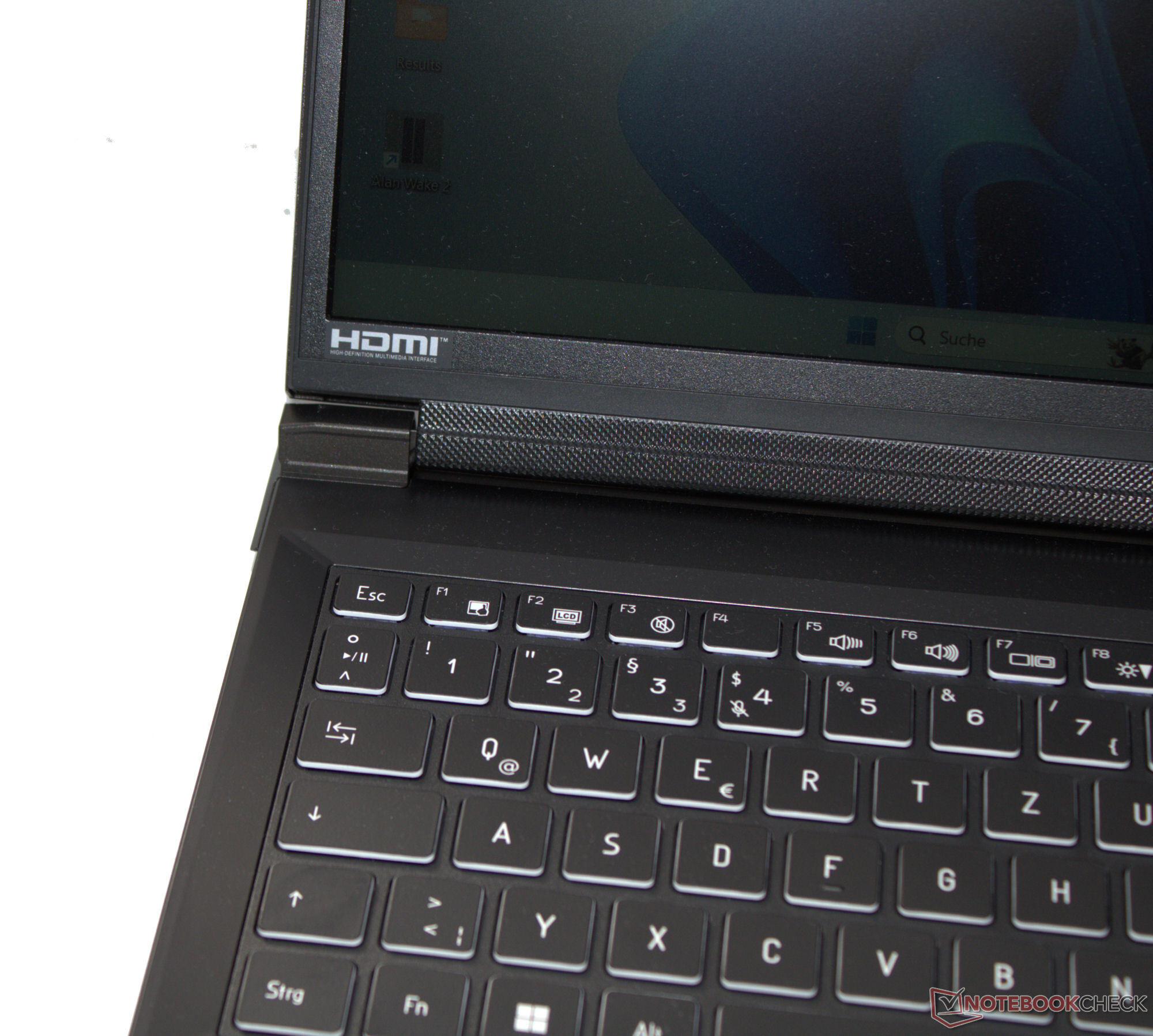 De Gigabyte G6X 9KG heeft elk één USB 3.2 Gen 1 en 1x USB 3.2 Gen 2 Type-A poort en twee USB 3.2 Gen 2 Type-C poorten die afzonderlijk Power Delivery en DisplayPort-out bieden. Alles bij elkaar heeft de G6X twee video-uitgangen (1x HDMI, 1x DP). Er is geen geheugenkaartlezer. De 1280 x 720 0,9 MP webcam is standaard.