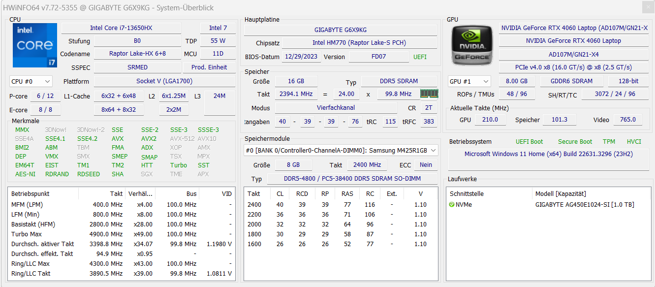 Dell G16, i7-13650HX, RTX 4060 audioanalyse