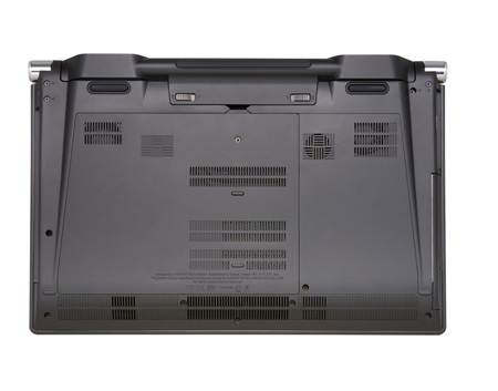 EN→NL Archive.org versionThe Gigabyte P25 measures 39x26x4.5cm, the last figure at the back which narrows to only 1cm at the front, it weights a mighty 2.74kilos. Certainly a unit to be considered as a Desktop replacement, it is large and heavy and for me anyway does not sit comfortably on the lap. It is however very fast and powerful. One feature I have not come across previously a yellow lid.