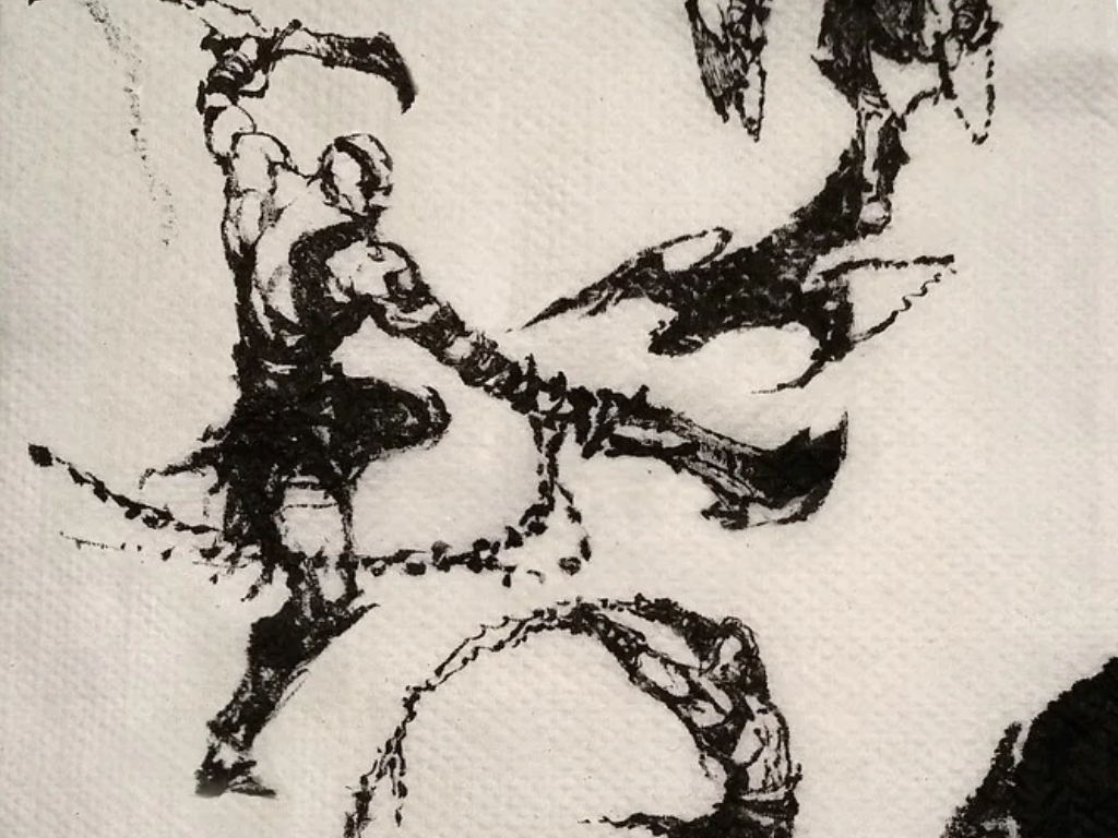 Jaffe keek één keer naar de asgrauwe gestalte van Kratos op het vel papier en besloot dat dit het uiteindelijke ontwerp van de Ghost of Sparta zou worden.