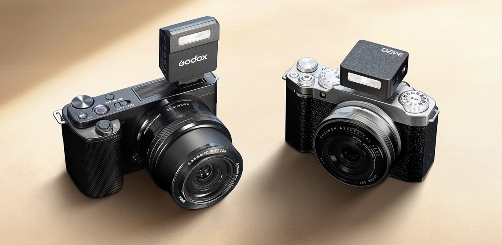 De Godox iM20 en iM22 zijn in vergelijking veel kleiner en goedkoper. Ze missen echter de draaibare reflector en de automatische modus van de iA32, en ondersteunen slechts vijf handmatig instelbare flitsniveaus. Hun geïntegreerde 470 mAh batterij kan ongeveer 440 flitsen op vol vermogen leveren en het duurt ongeveer 70 minuten om volledig op te laden via USB-C. De iM20 en iM22 wegen respectievelijk slechts 31 g (1,1 oz) en 34 g (1,2 oz).