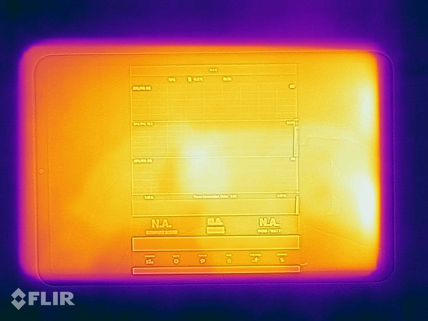 (±) De maximumtemperatuur aan de bovenzijde bedraagt 41.9 °C / 107 F, vergeleken met het gemiddelde van 33.7 °C / 93 F, variërend van 20.7 tot 53.2 °C voor de klasse Tablet.