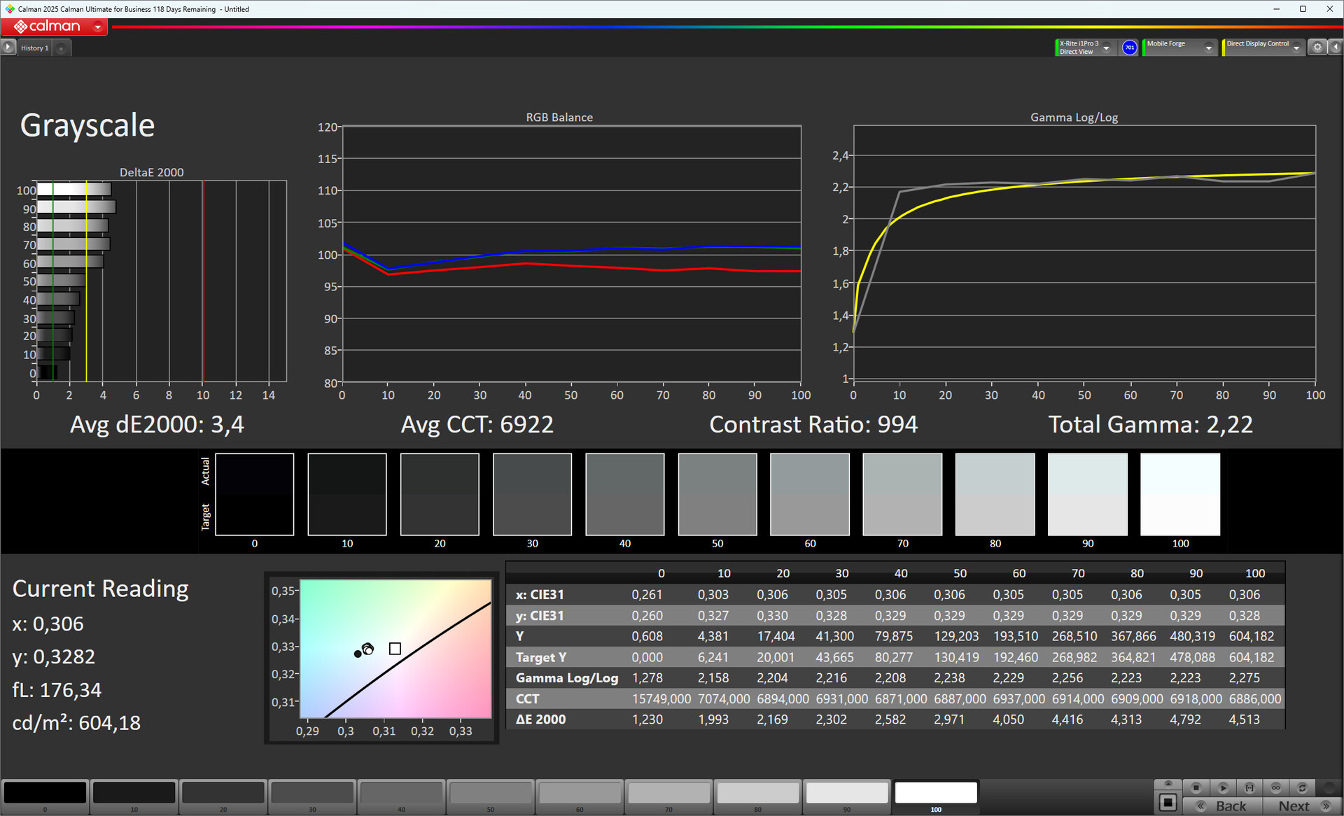 Het 3K-scherm heeft een beeldverhouding van 16:10 met een resolutie van 3008 x 1880 pixels. Met HDR10, HDR10+, HLG en Dolby Vision is de HDR-ondersteuning uitstekend. Het scherm haalt echter slechts een maximum van 508 cd/m² in HDR-modus.