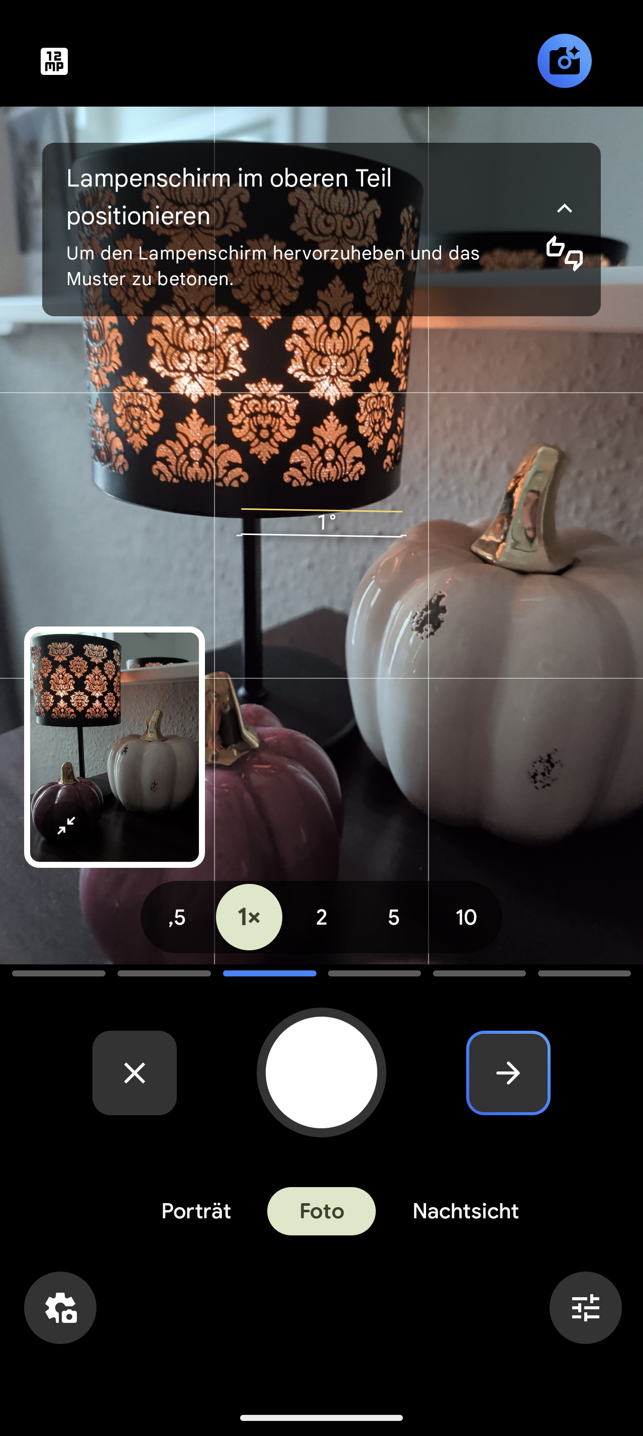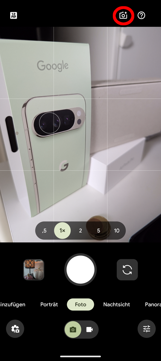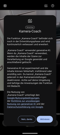 Het moet eerst worden geactiveerd in de instellingen en kan dan worden gebruikt via het kleine AI-camerapictogram in de camera-app. Zodra het pictogram wordt aangetikt, analyseert het algoritme de live-weergave van de camera, wat in de cloud gebeurt. De coach geeft vervolgens een selectie van mogelijke beeldcomposities en begeleidt u in verschillende stappen door het proces, dat we hier hebben samengevat in een reeks afbeeldingen, inclusief het resultaat (laatste afbeelding):