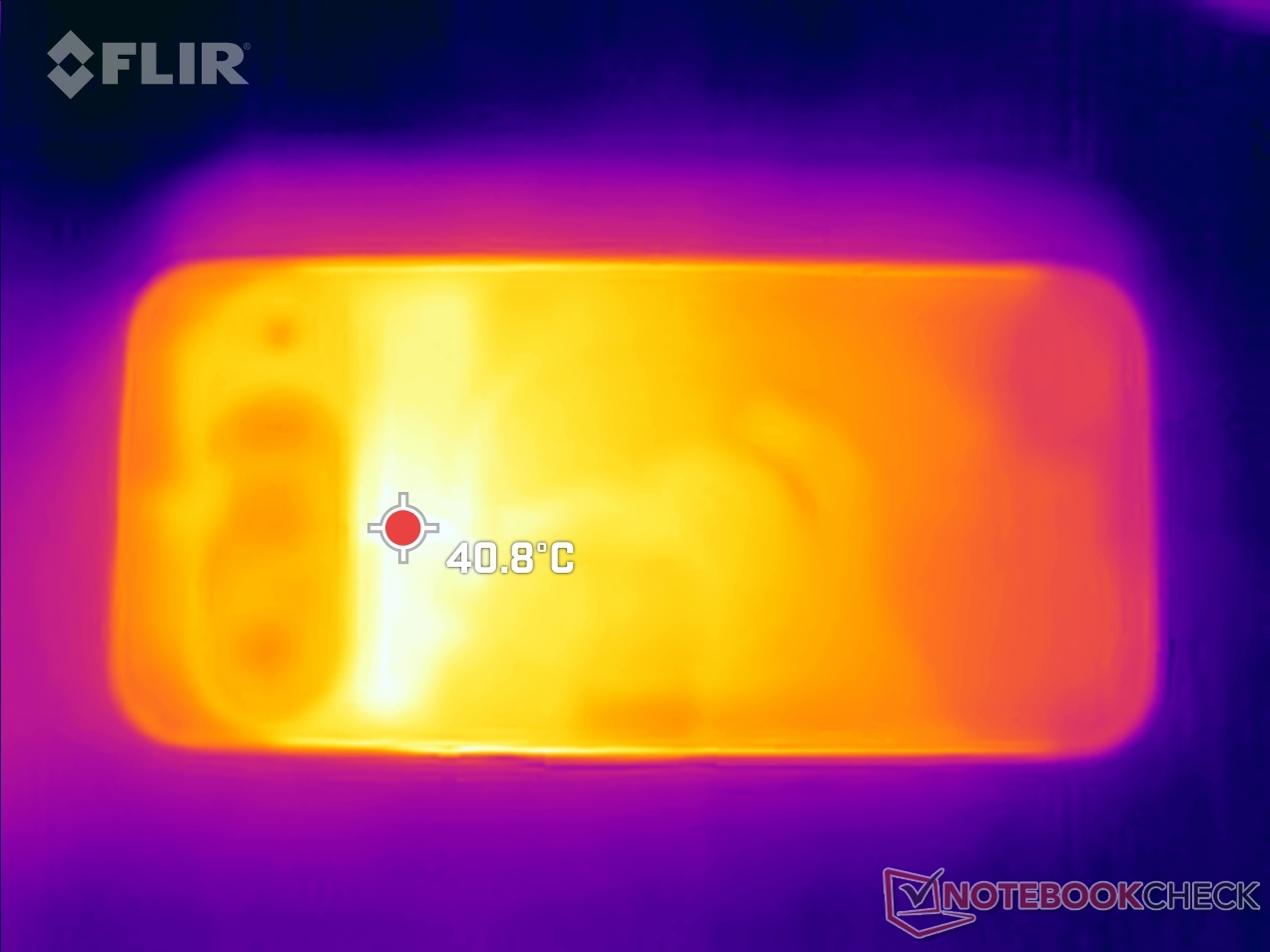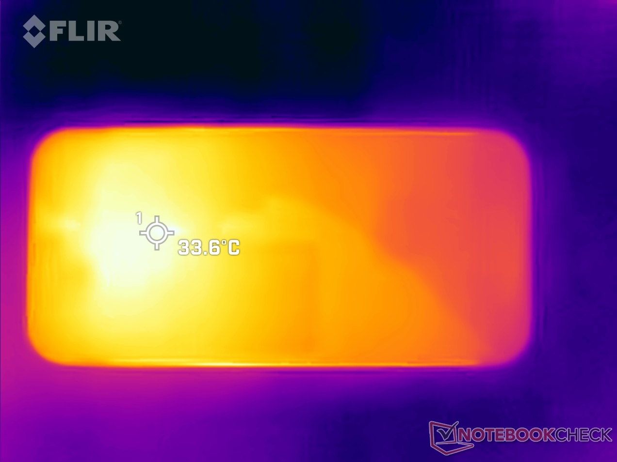 (+) Bij onbelast gebruik bedraagt de gemiddelde temperatuur voor de bovenzijde 30.2 °C / 86 F, vergeleken met het apparaatgemiddelde van 32.9 °C / 91 F.