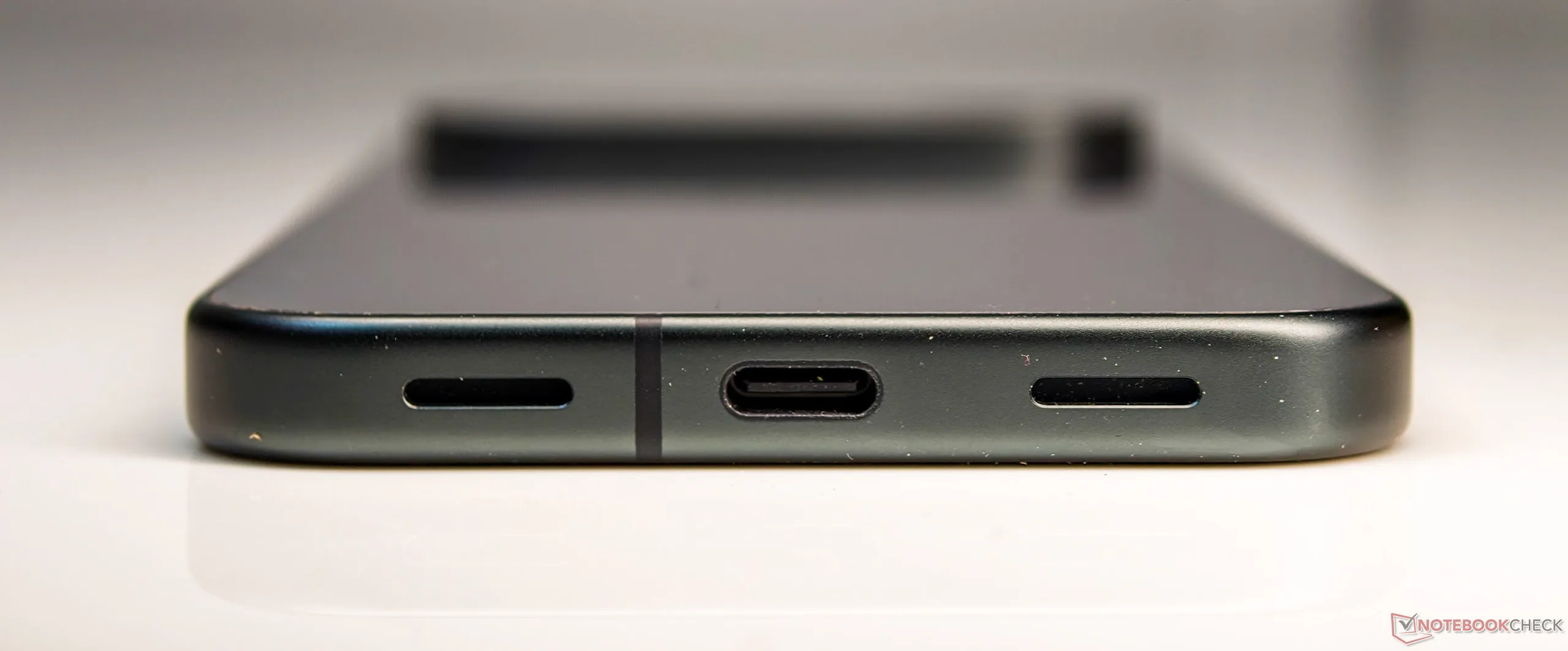 De luidspreker is rechts van de USB 3.2 Type-C poort geplaatst, zodat deze niet wordt geblokkeerd wanneer de telefoon in liggende stand wordt gehouden.