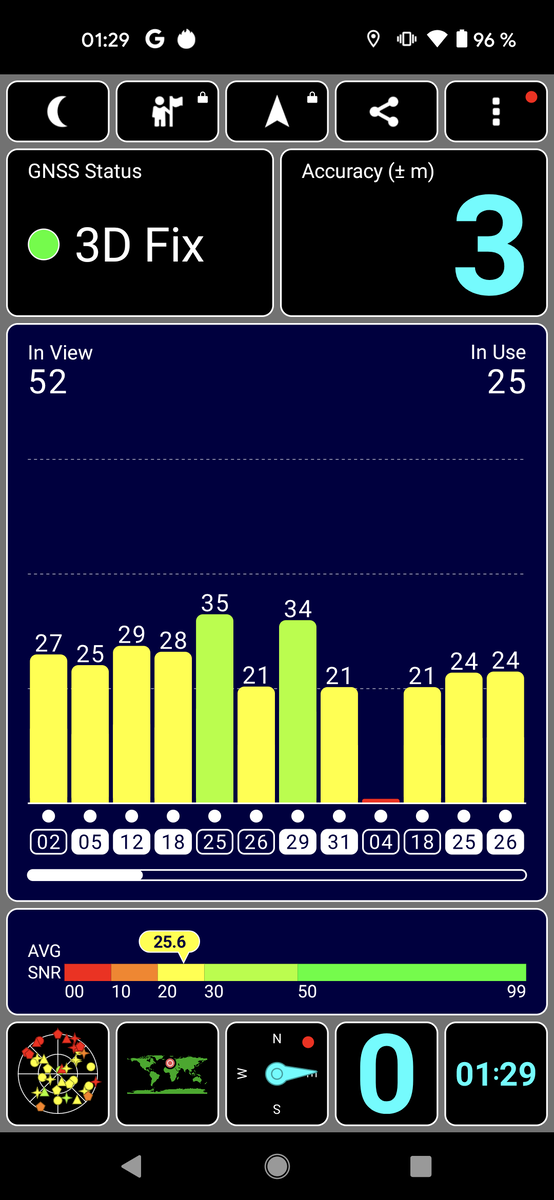 De Pixel 5 bepaalt zijn huidige locatie met behulp van de GPS, GLONASS, Galileo, QZSS en BeiDou satellietnavigatiesystemen. Tijdens onze test slaagde hij hierin zowel buiten als binnen met een nauwkeurigheid van 3 meter (~10 ft).