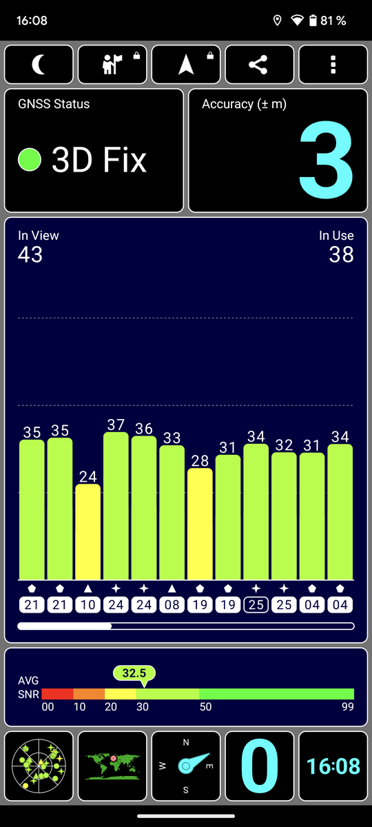 De Google Pixel 7 gebruikt dual-band GNSS om zijn positie te bepalen en ondersteunt alle gangbare netwerken. Buiten werkt de satellietbepaling zeer snel en nauwkeurig. Binnen duurt het iets langer, maar werkt het ook nauwkeurig