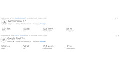 We hebben de smartphone vergeleken met de Garmin Venu 2tijdens een korte fietstocht. De bepaalde route was voor beide toestellen vrijwel identiek. Alleen een blik op de gedetailleerde routelog onthult de verschillen. Tijdens een rondje om een meer legde de Pixel de afgelegde route nauwkeuriger vast, maar de smartwatch was preciezer als het ging om de keerlus.
