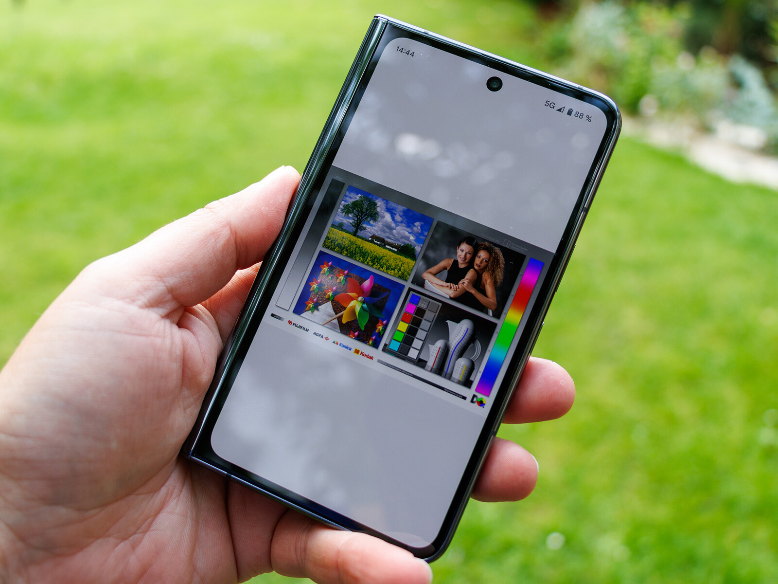 De vormfactor en afwerking zijn daarentegen overtuigend. Vooral het eerste is een uniek verkoopargument op de Europese markt. De openingen van de Pixel Fold zijn vlak en passen perfect, maar hij kraakt en kraakt hoorbaar bij lichte torsiestress. De verhouding display/oppervlak van 83 procent zou ook beter kunnen. De IPX8-certificering, waardoor de Google Fold waterdicht is, is een positief aspect
