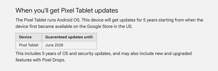 De Google Pixel tablet werd in juni 2023 gelanceerd met Android 13. Aanvankelijk beloofde Google slechts drie grote Android updates en functie-updates tot juni 2026, hoewel de Pixel-tablet vijf jaar lang beveiligingspatches zou ontvangen. Nu heeft Google op zijn ondersteuningswebsite bevestigd dat de Pixel tablet toch vijf jaar lang updates voor het besturingssysteem zal ontvangen.