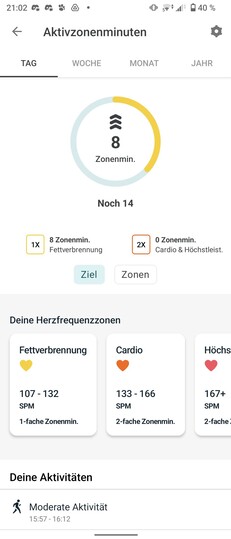De software biedt ook extra functies zoals mindfulness-oefeningen (alleen in het Engels), stressmanagement en een dagelijkse conditie-index. Het toont het aantal genomen stappen, beklommen verdiepingen, de gelopen afstand en de verbrande calorieën. Het geeft ook de zoneminuten weer, dat is de tijd die je binnen bepaalde hartslagbereiken hebt doorgebracht. De zones zijn onderverdeeld in "vetverbranding", "cardio" en "hoogste prestatie"