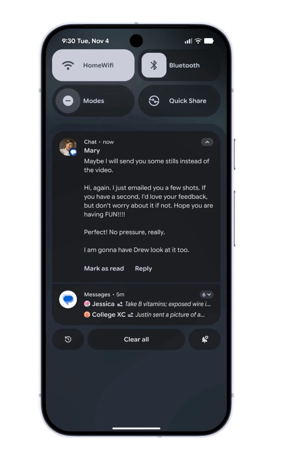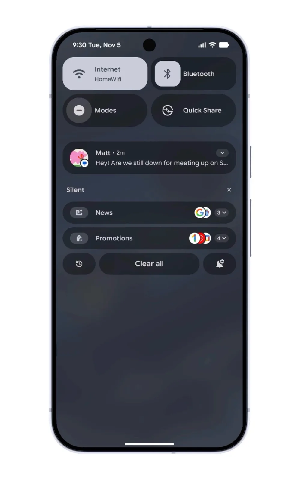 Als er een thema wordt gebruikt, zal de update ook kleur toepassen op pictogrammen van apps die geen thema's ondersteunen, omdat de betreffende pictogrammen via AI worden gegenereerd. Inkomende meldingen kunnen na de update automatisch door AI worden samengevat, terwijl berichten met een lage prioriteit, zoals advertenties, worden gegroepeerd en in een kleiner formaat worden weergegeven.