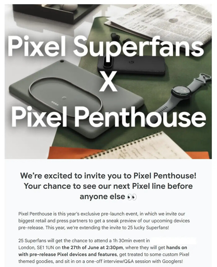 Hoewel we door onvoorziene omstandigheden niet langer uitnodigingen voor het Pixel Penthouse-evenement kunnen uitdelen, zijn we verheugd u een exclusieve alternatieve prijs te kunnen aanbieden: een vroege uitnodiging voor ons volgende evenement, het Pixel Superfans Insider Event, op 4 september.