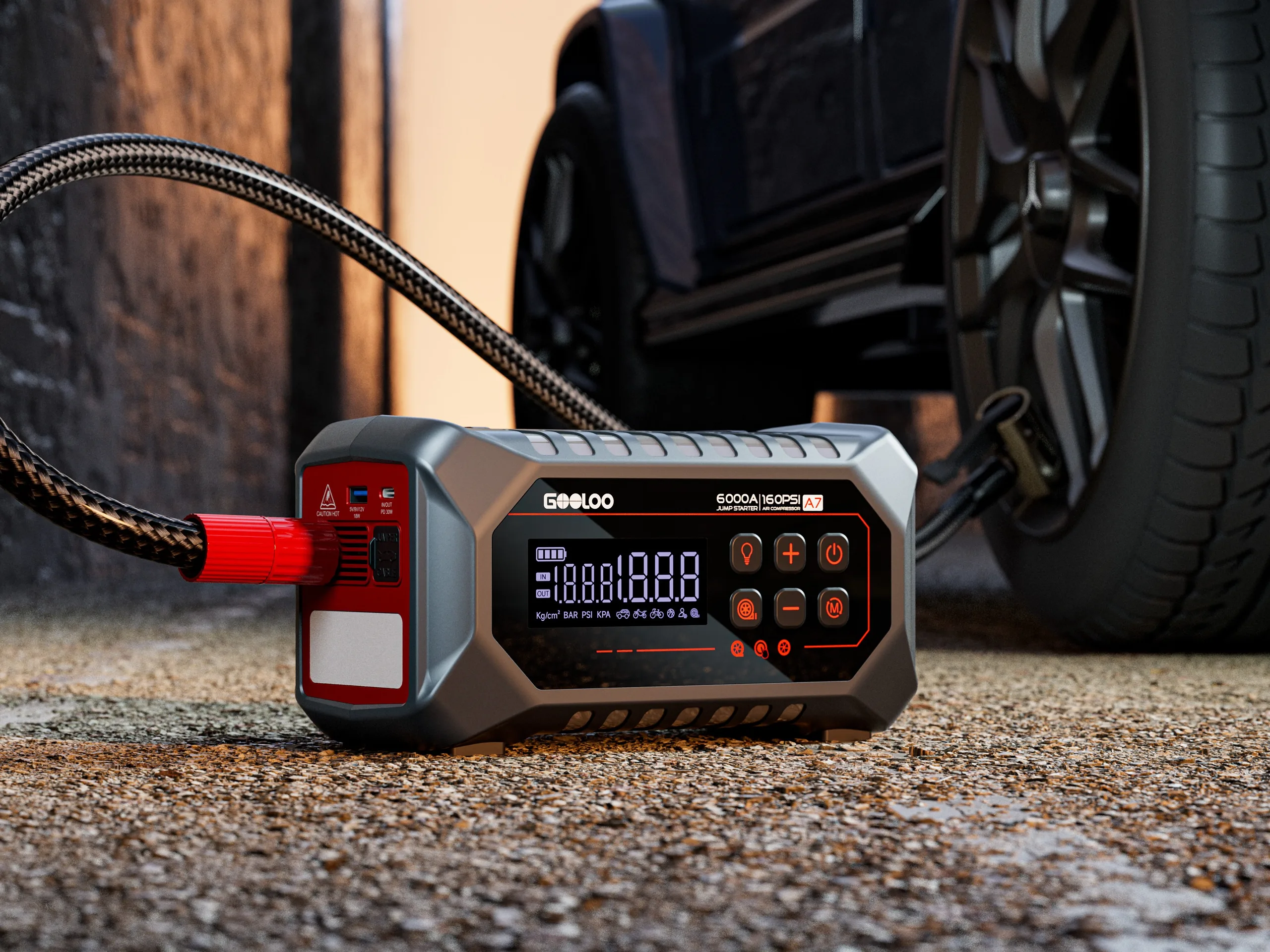 Zoals hierboven al vermeld, is dit een 3-in-1 accessoire, wat betekent dat er nog één functionaliteit overblijft, toch? Last but not least kunnen consumenten de A7 ook gebruiken als een elektrische bandenopblazer, met een maximale bandenspanning van 160 PSI. Om precies te zijn suggereert Gooloo dat een 195/65R15 autoband in de automodus in ongeveer 1 minuut kan worden opgepompt van 30 tot 36 PSI. Daarmee is hij aanzienlijk langzamer dan Gooloo's onlangs gelanceerde GT160 Dual (momenteel verkrijgbaar voor $79,98 op Amazon), die er slechts 27 seconden over doet om een autoband met dezelfde spanning op te blazen.