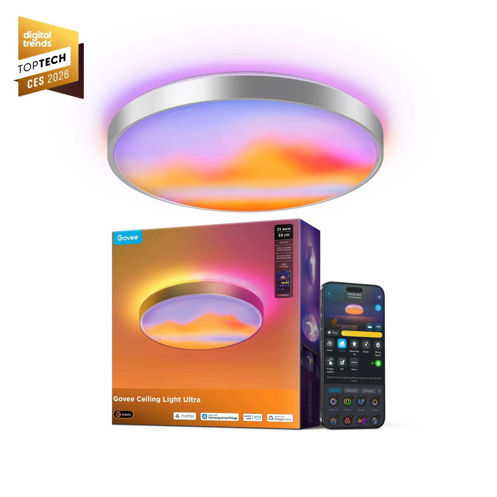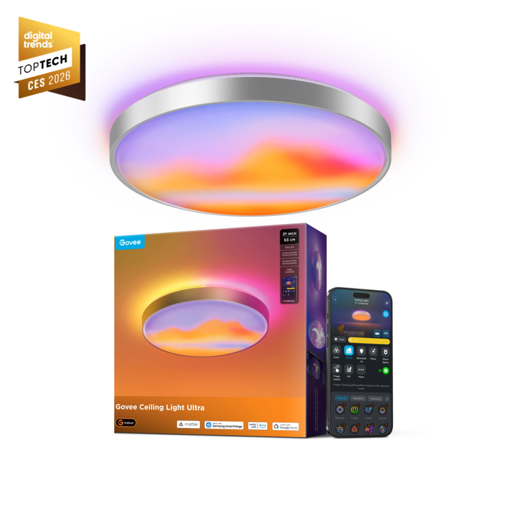 De Govee 21-inch Smart Ceiling Light Ultra kan ook worden gebruikt als een conventionele kamerlamp en biedt volgens de fabrikant bijzonder natuurlijke verlichting, inclusief aanpassingen op basis van het tijdstip van de dag. De helderheid kan oplopen tot 5.000 lumen. De nieuwe slimme 21-inch plafondlamp Ultra van Govee biedt ook de vertrouwde smart home-connectiviteit van de fabrikant, inclusief Matter, evenals stembediening via Amazon Alexa en Google Home.