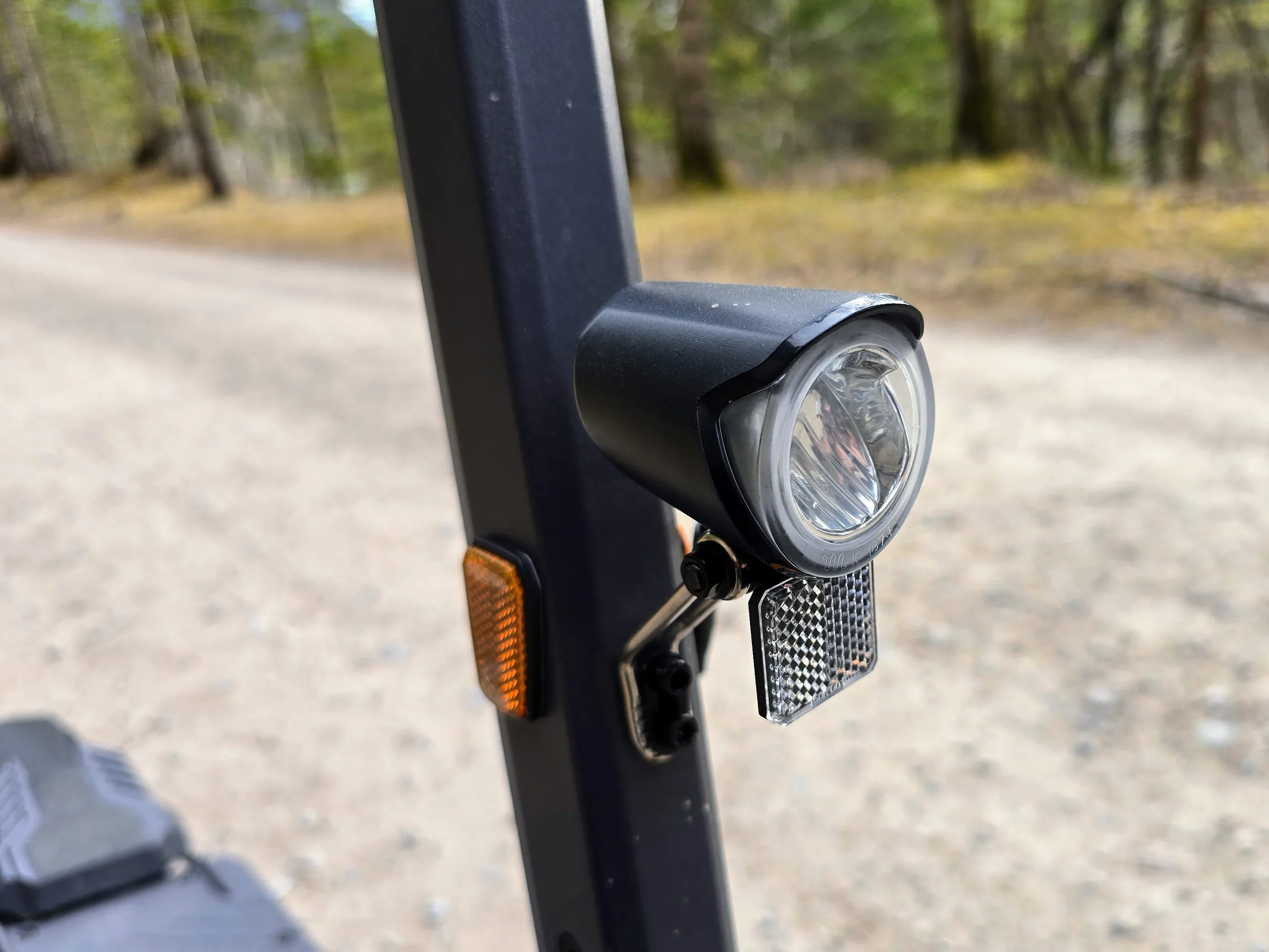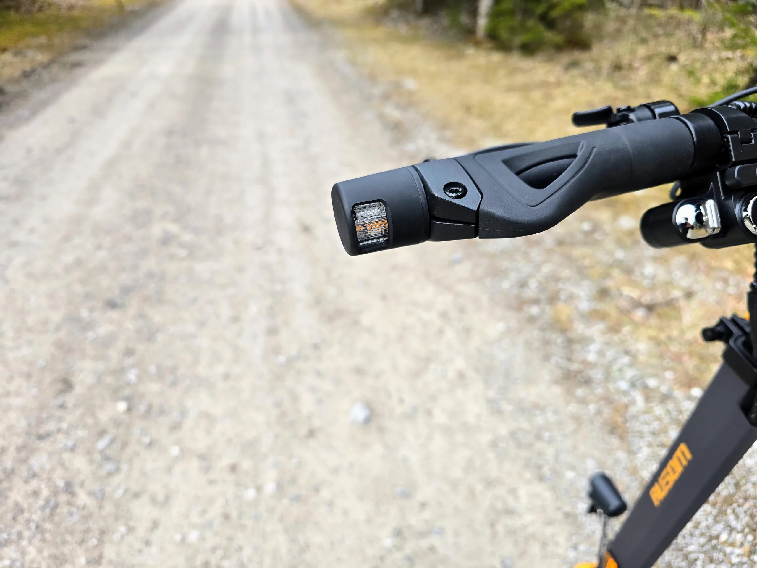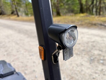 Op het stuur van de Ausom L1 zit een LED-koplamp die ook op fietsen gebruikt zou kunnen worden. De lichtopbrengst is oké, maar er zijn schaduwplekken in het lichtbeeld op middellange afstanden. Er is geen grootlichtfunctie.