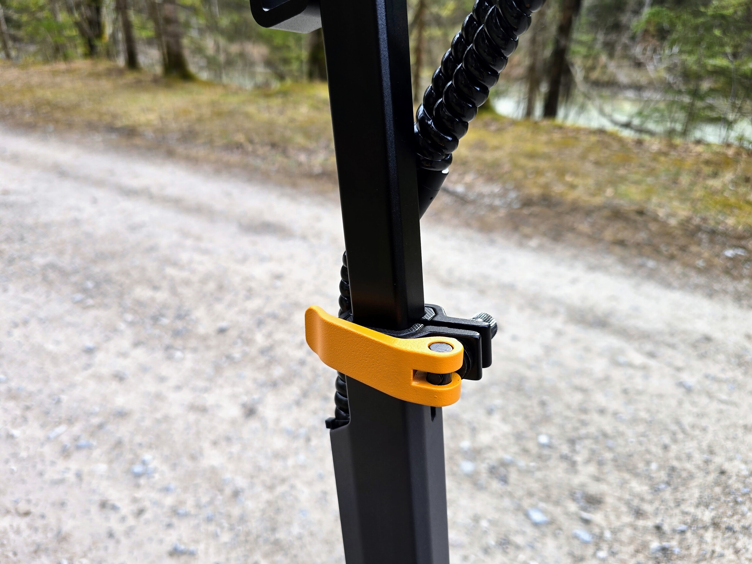 De L1 heeft vering op beide wielen. De voorspanning van de spiraalveren kan worden aangepast, maar het bijbehorende gereedschap wordt niet meegeleverd.