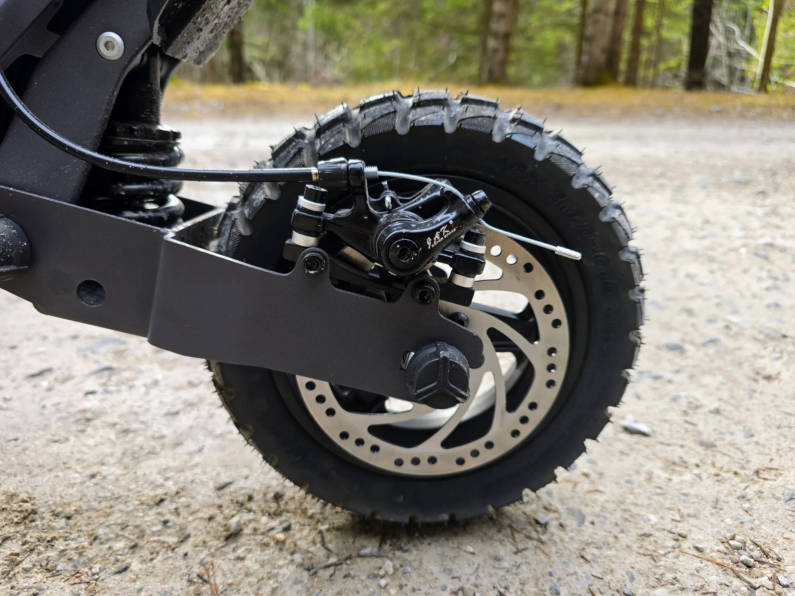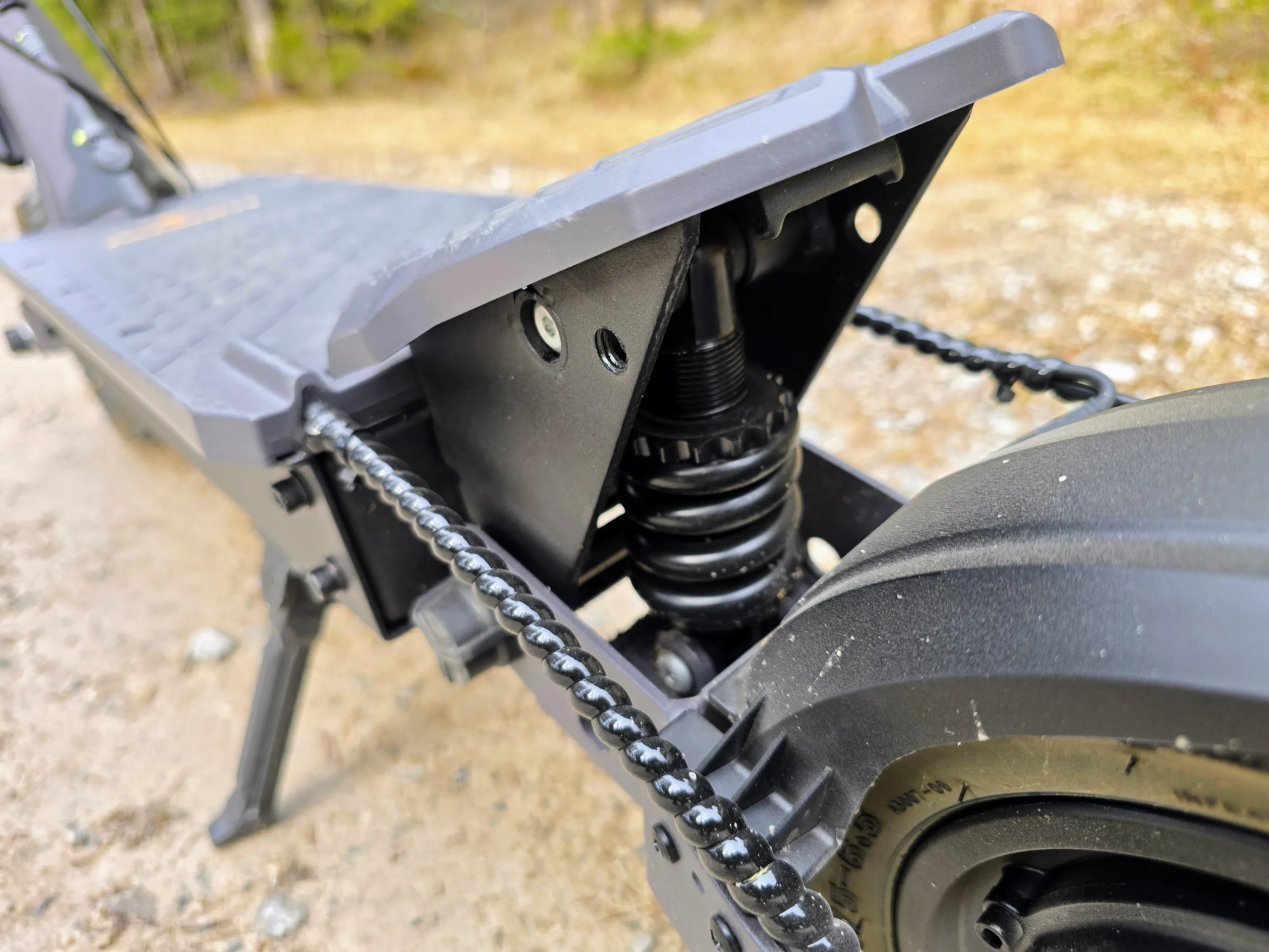 Ausom maakt reclame voor de off-road capaciteiten van de scooter. Op fietspaden zonder asfalt slaat de L1 in ieder geval een goed figuur. De e-scooter rijdt veilig en is niet bang voor kuilen.