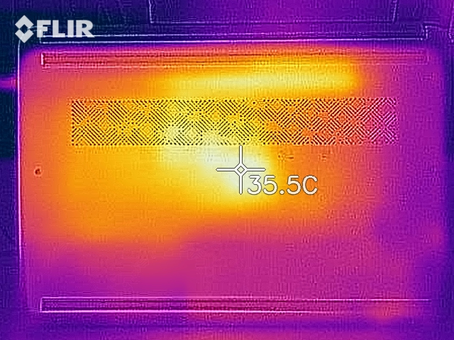 De HP 14s heeft dan ook een voorkeur voor lage oppervlaktetemperaturen. Het is slechts iets meer dan 60 graden (~140 graden Fahrenheit) op de chip permanent, wat betekent dat we een maximum van 45 graden (~113 graden Fahrenheit)op de bodem hebben gemeten, terwijl het gemiddelde van 30 graden(~86 graden Fahrenheit) aanzienlijk lager is.