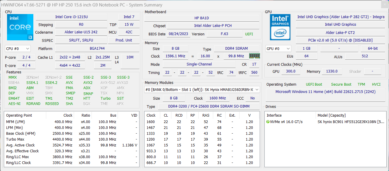 | 75.2 % v7 (old) | 12-2023 | HP 250 G9 7N029ES i3-1215U, UHD Graphics 64EUs | 1.7 kg | 19.9 mm | 15.60" | 1920x1080 | |